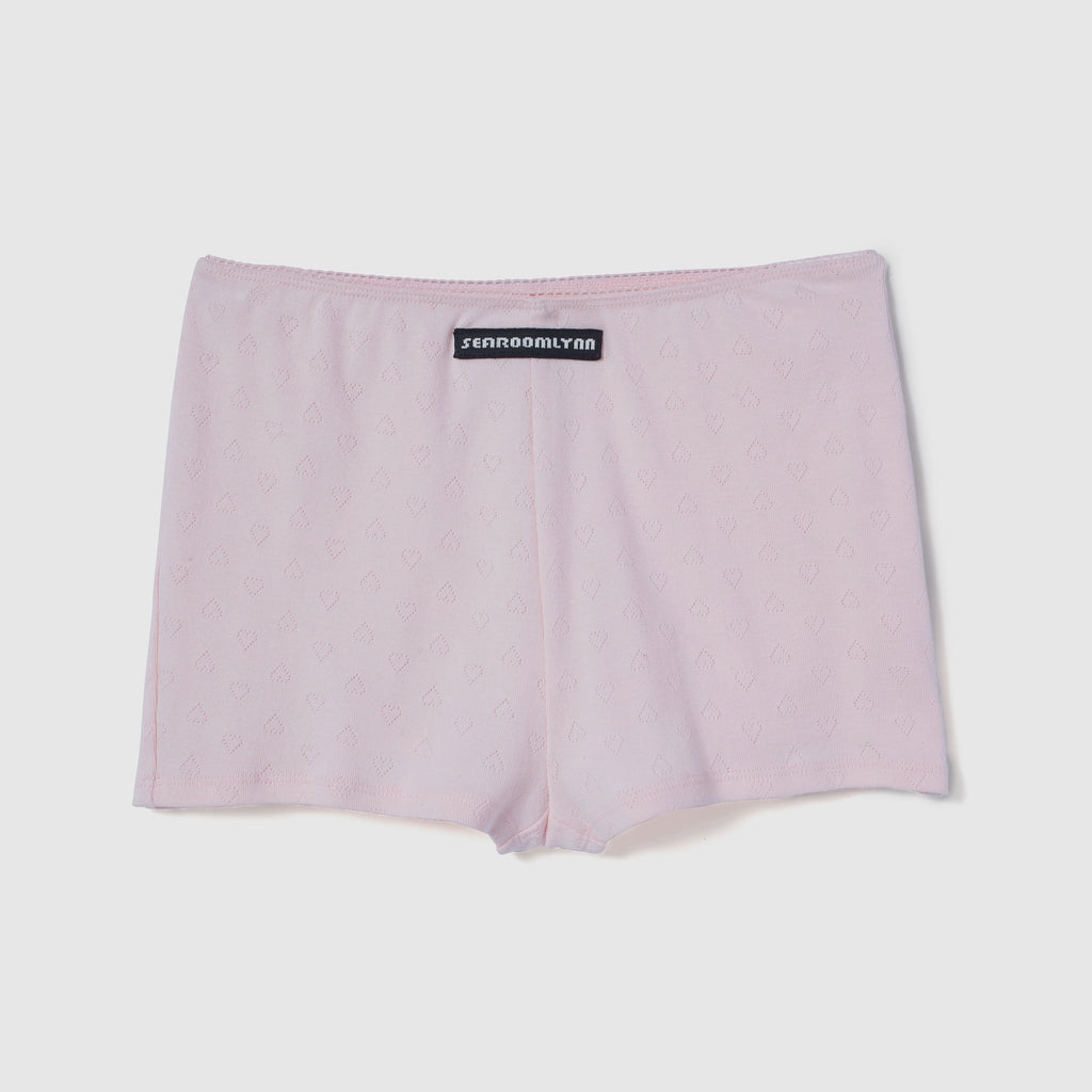 ハート模様とピコレースが可愛らしい表情を与えるショートパンツ。柔らかな素材感で素肌にも着心地抜群です。インナーとしても部屋着としても、1枚あると大活躍。