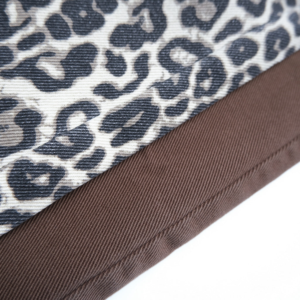 「キナリ/レオパード」はオリジナル柄プリントをしっかり洗いこみ、擦れと白っちゃけさせたユーズド感をプラス。「ブラウン」は生地染めで仕上げた深みのあるカラーを、洗いで着古した雰囲気に仕上げました。いずれもコットン100%のナチュラルな風合いが魅力です。