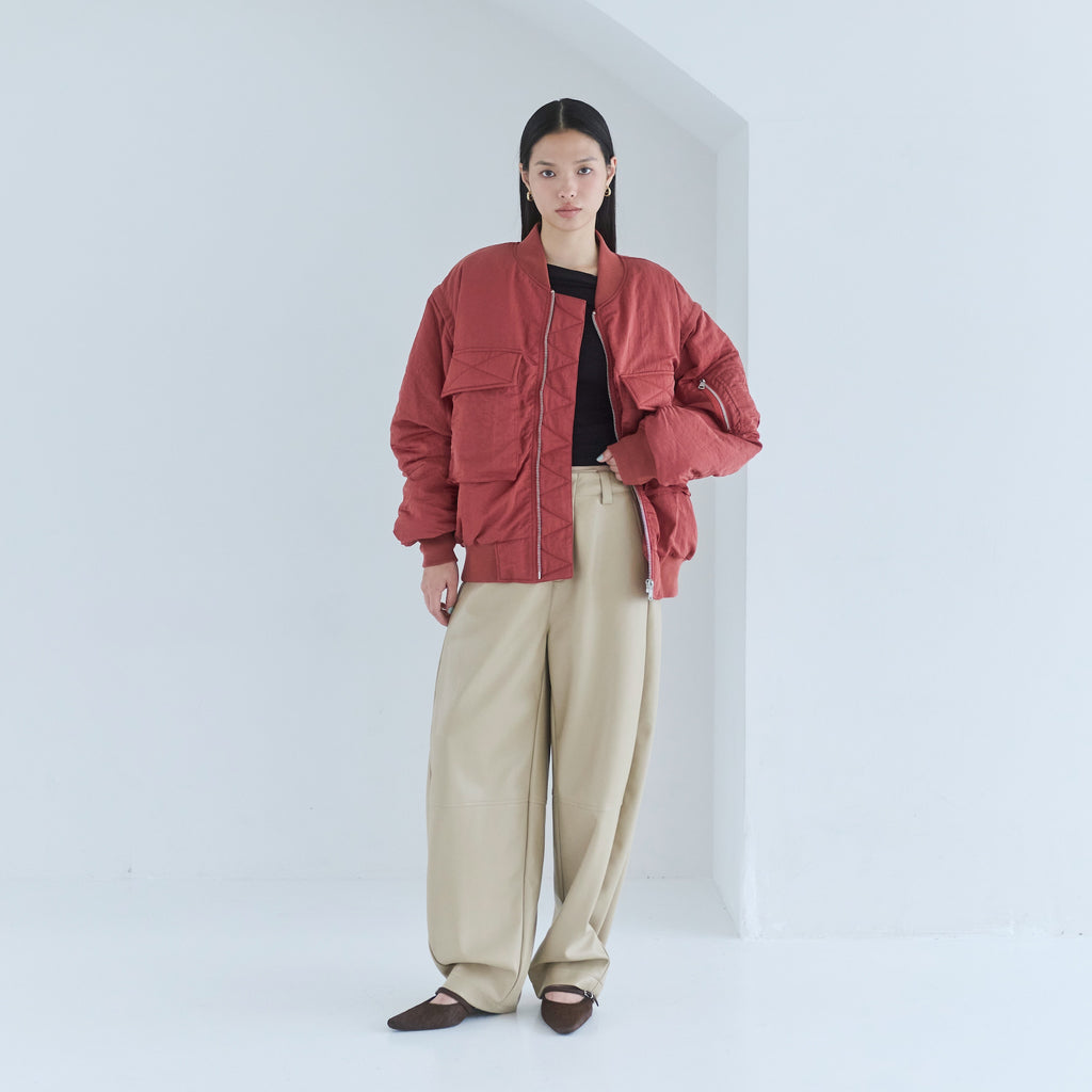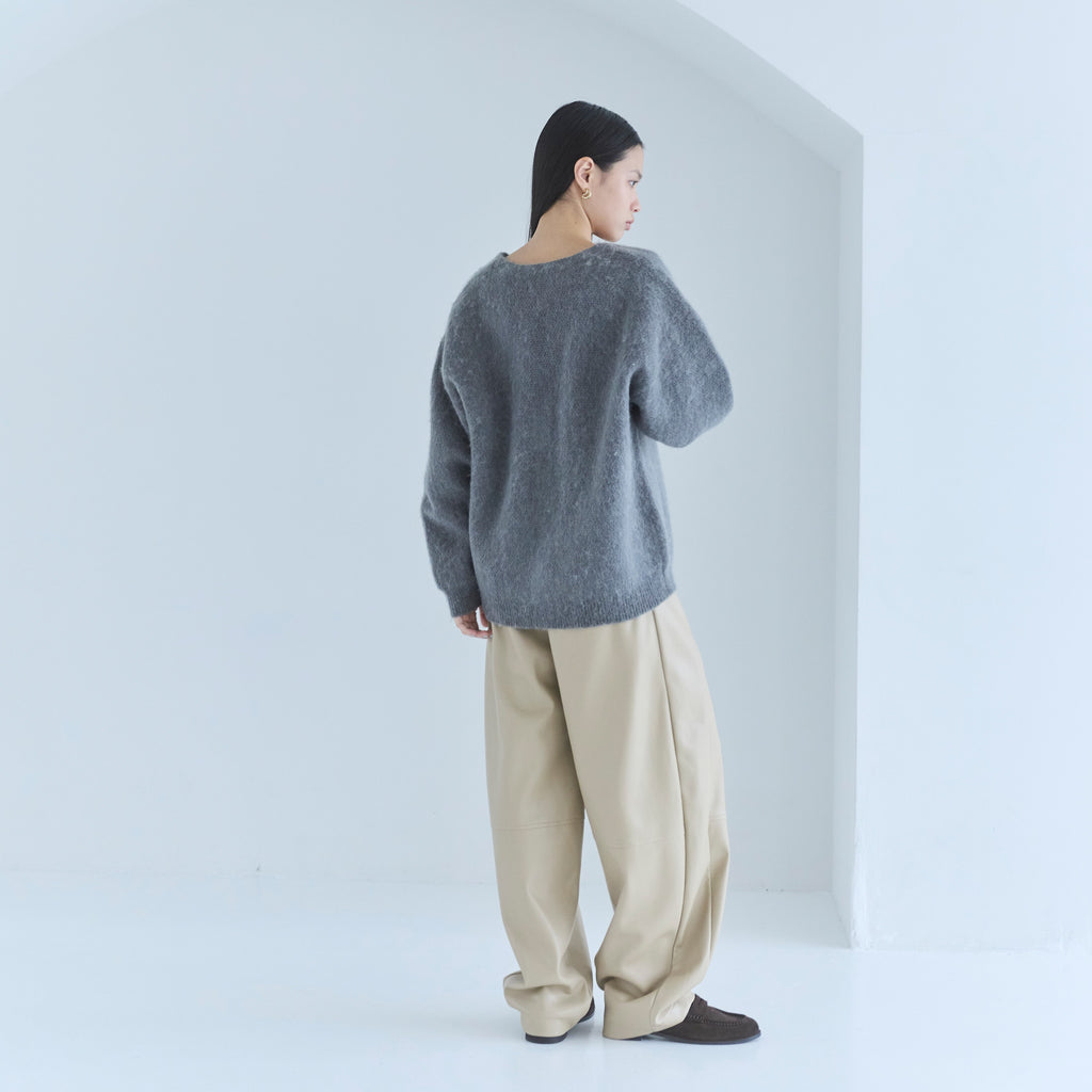 秋冬に頼れるエコレザーパンツ。丸みを帯びたルーズ&立体的なシルエットで、モードな表情を添えてくれます。風を通さない裏起毛も、寒い季節に嬉しいポイント。