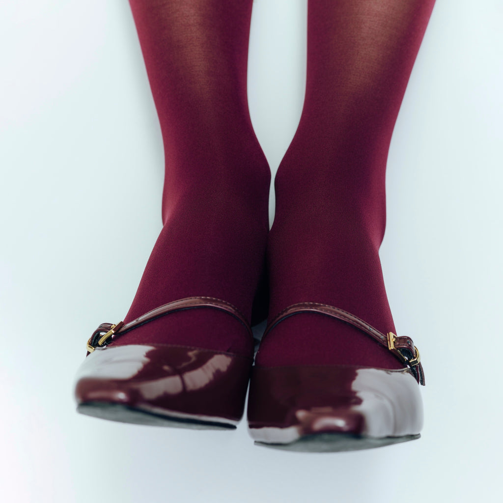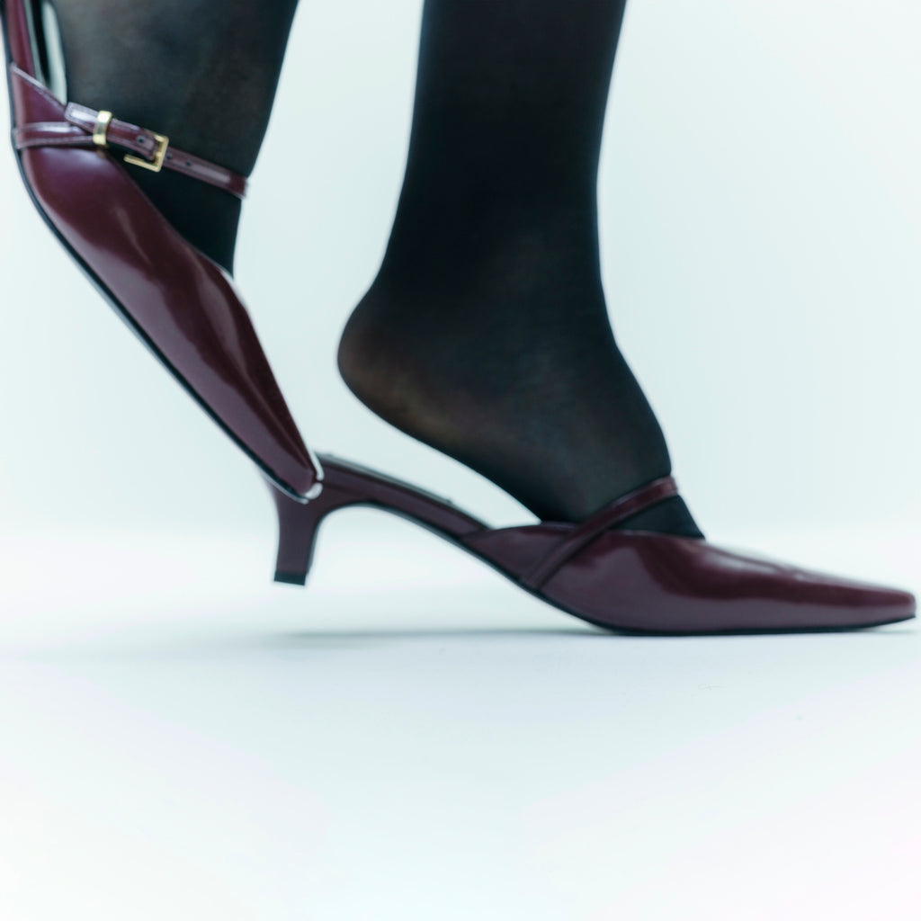 甲部分の細めストラップが足を固定しつつフェミニンさをプラス。「ブラック」にはシルバーの金具、「ボルドーブラウン」にはゴールドの金具が付属します。