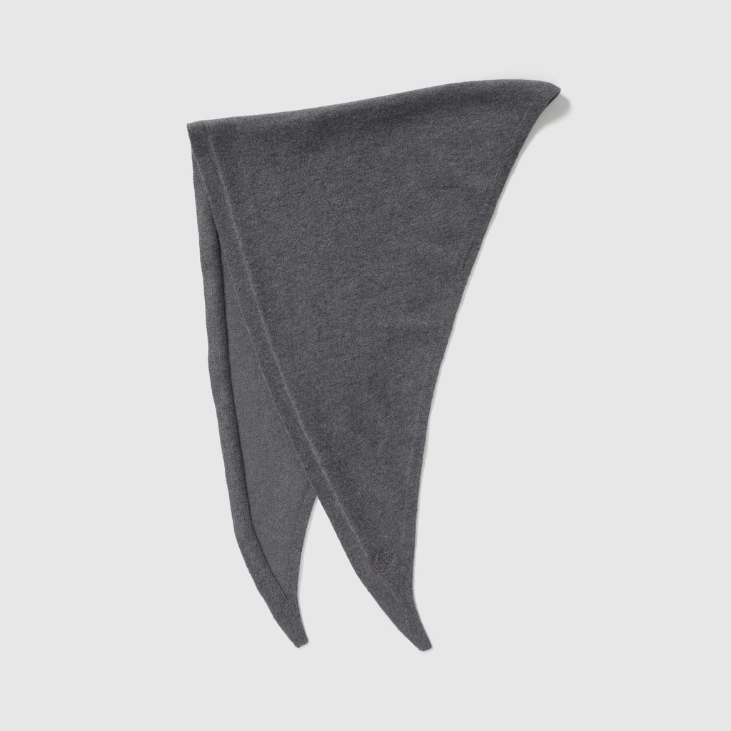 先端を尖らせたシルエットが特徴のスカーフ。結び方次第で、ヘッドスカーフ・ネックスカーフ・ショール風など多彩なアレンジが楽しめます。シンプルな装いにプラスするだけで、スタイリングが引き締まるデザインです。碇(いかり)マークのロゴ刺繍を先端に同色で配置し、ボディに馴染ませつつさりげないアクセントに。