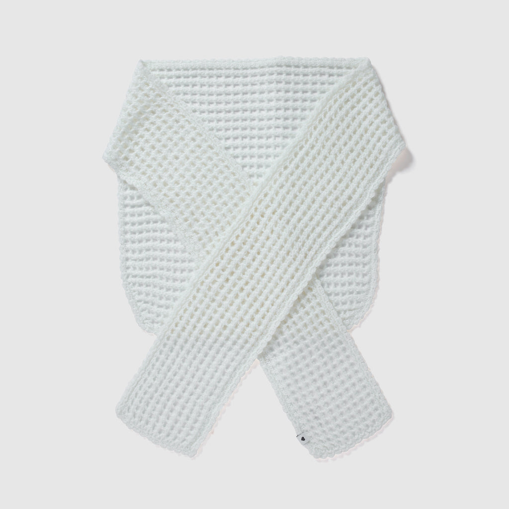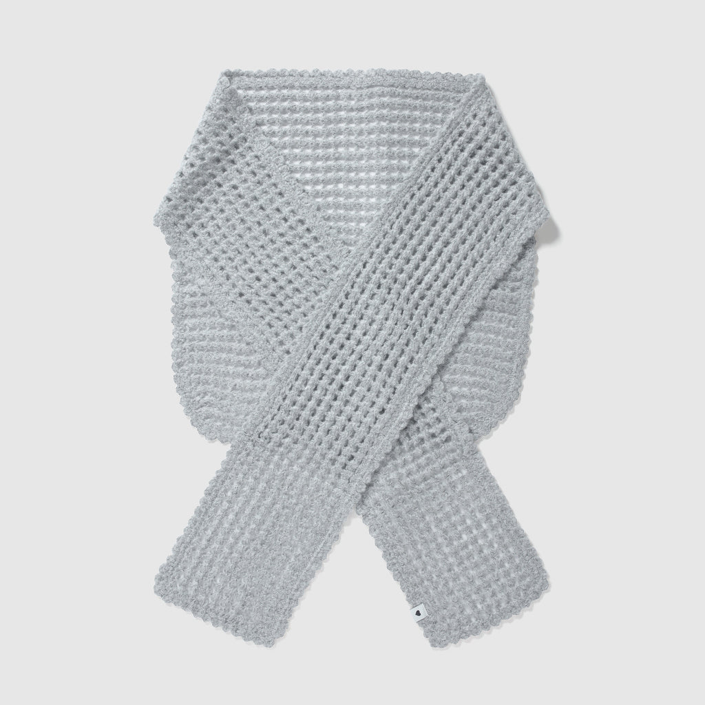 肩にさっと掛けるだけでスタイルを格上げするストール。格子状の編み地と貝殻のような細かなスカラップ柄で、軽やかな大人可愛いニュアンスが完成。