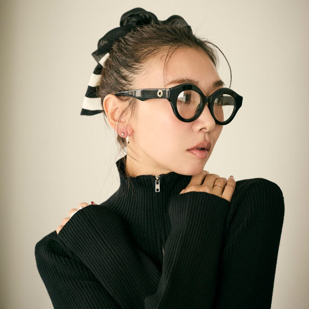 太めのセルフレームが存在感を放ち、柔らかな曲線により上品で洗練された印象。クラシックな形ながらも、バランスの取れたサイズ感でトレンドをおさえています。程よいボリュームがファッションのアクセントになり、シンプルなスタイリングにも映えます。