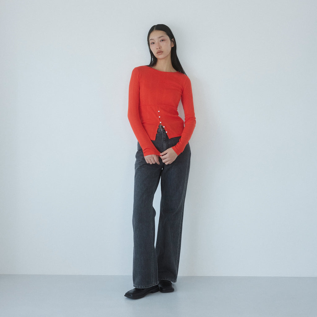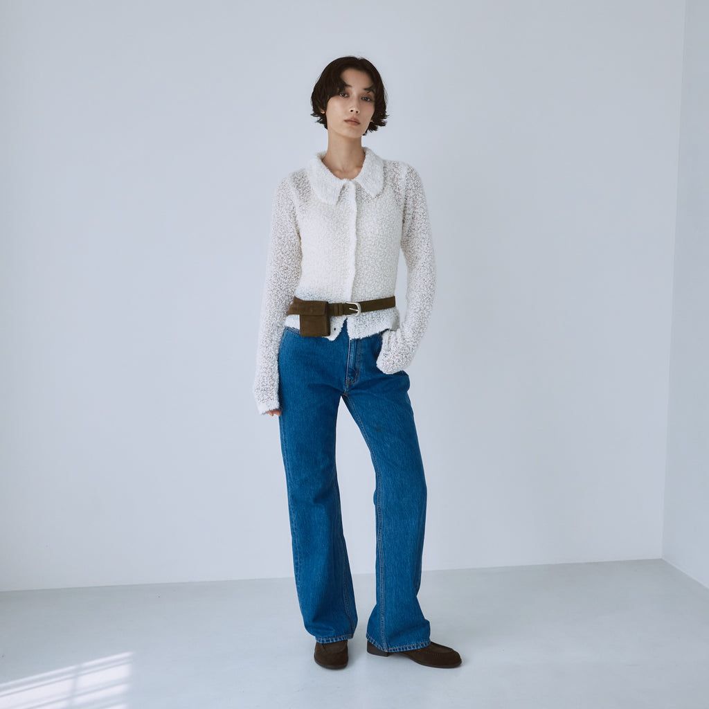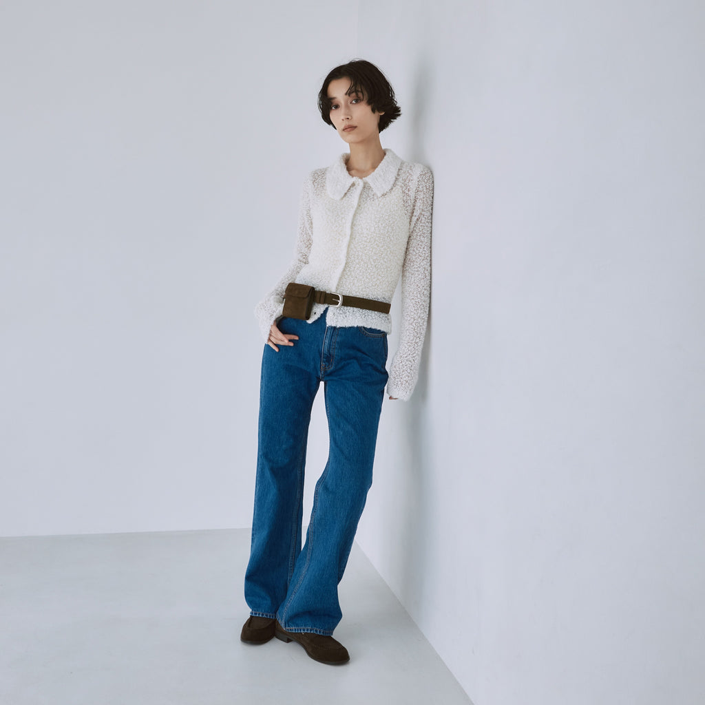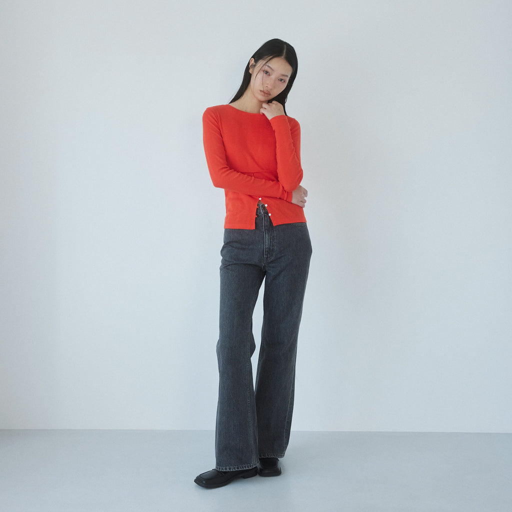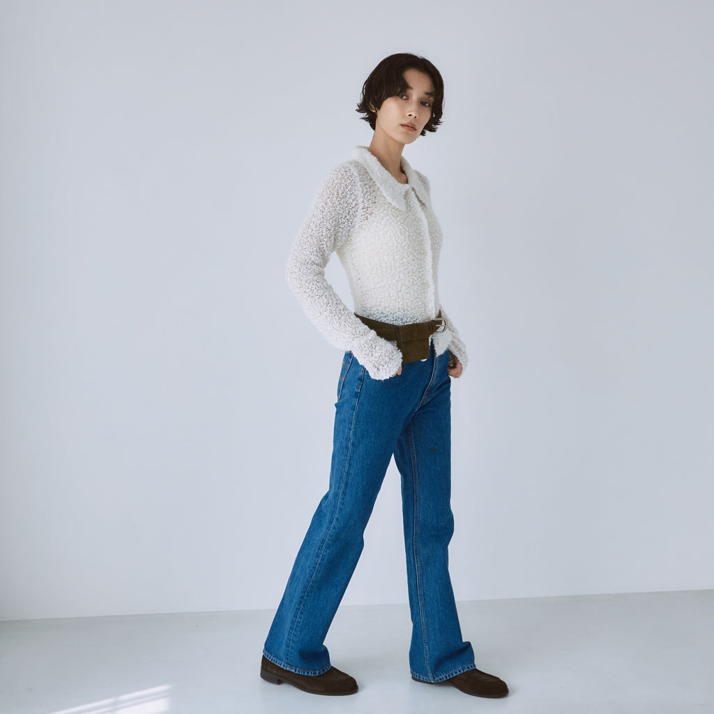 定番フレアデニムよりも股下をやや長めに設定することで、低めのヒールを履いても美脚に。