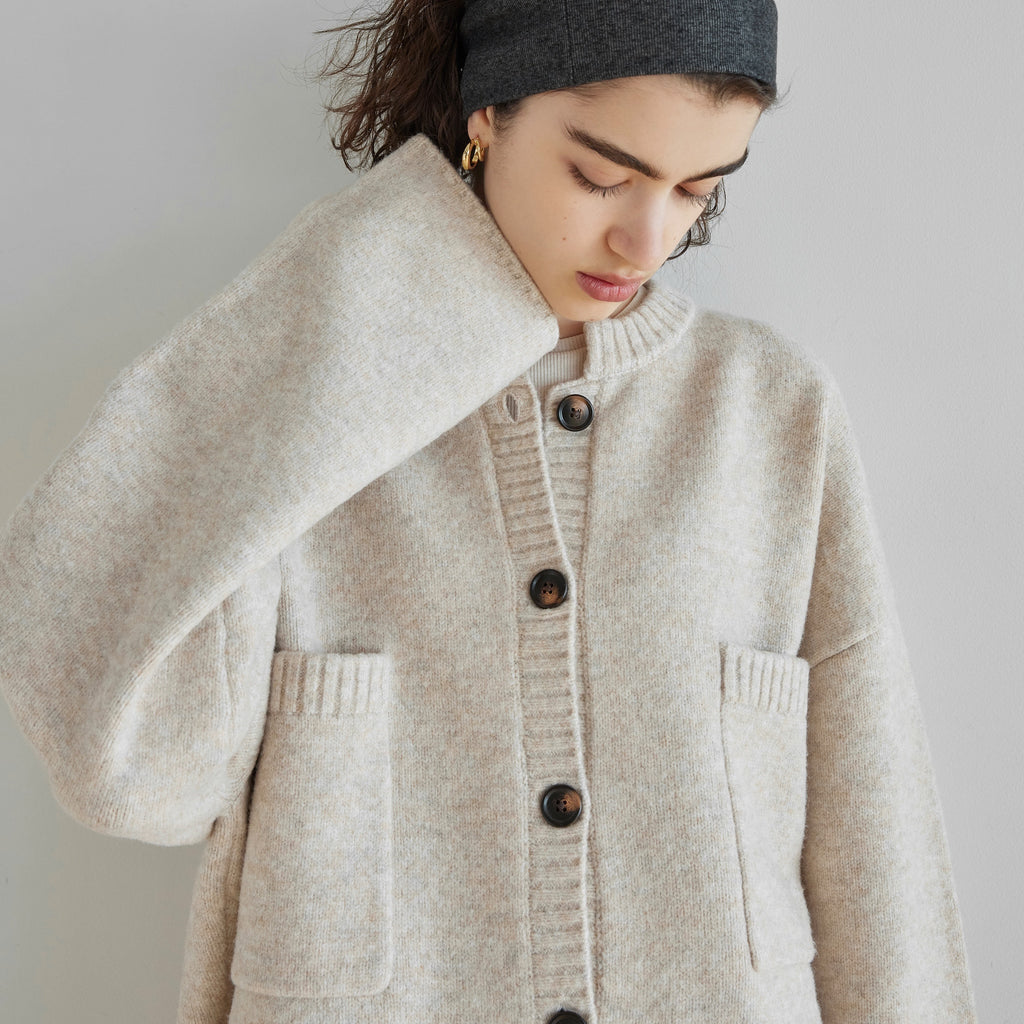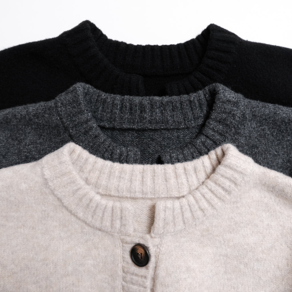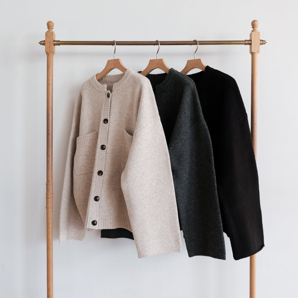 毎年大人気の暖かな〈ウールmix〉シリーズから新作が登場。ルーズな雰囲気でざっくり羽織れるカーディガンです。多様な糸による繊細な色味が可愛い1枚。