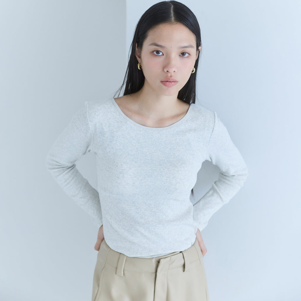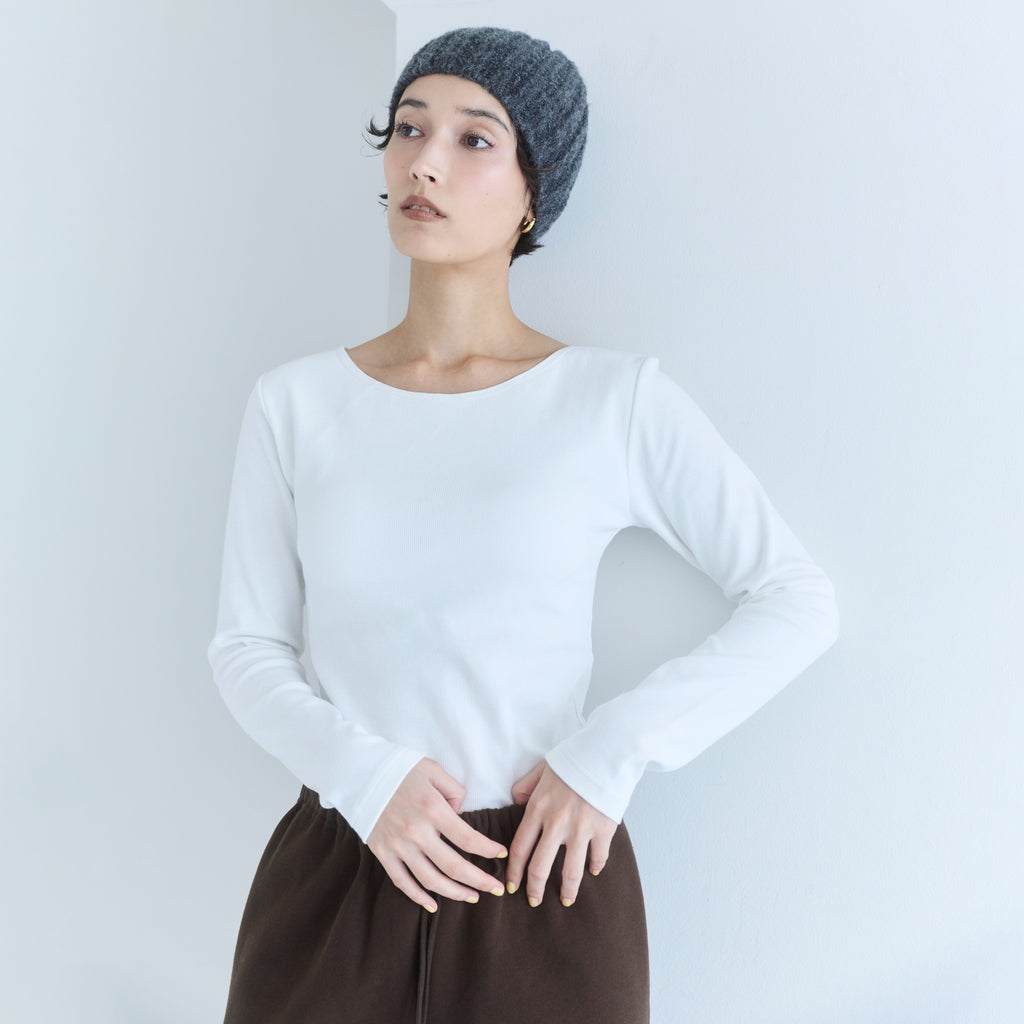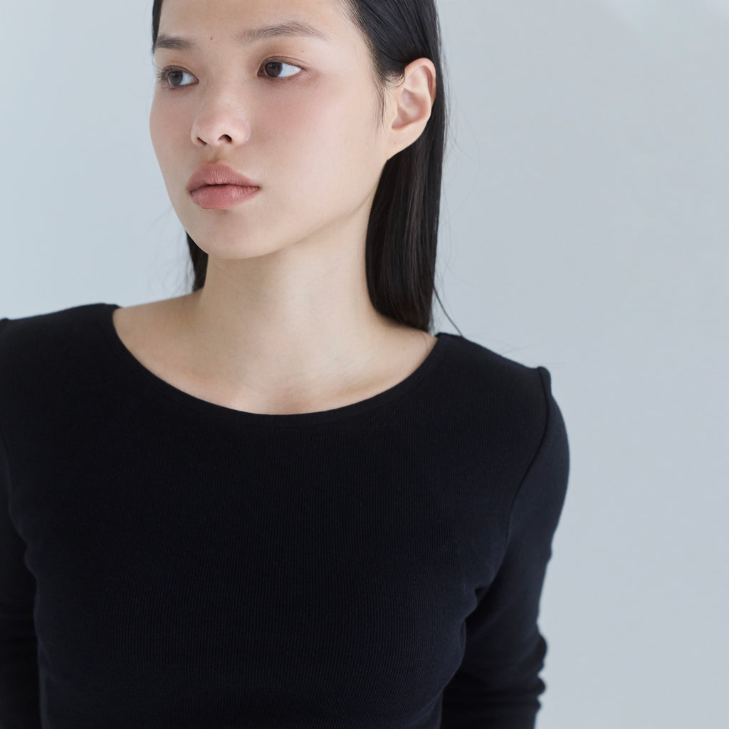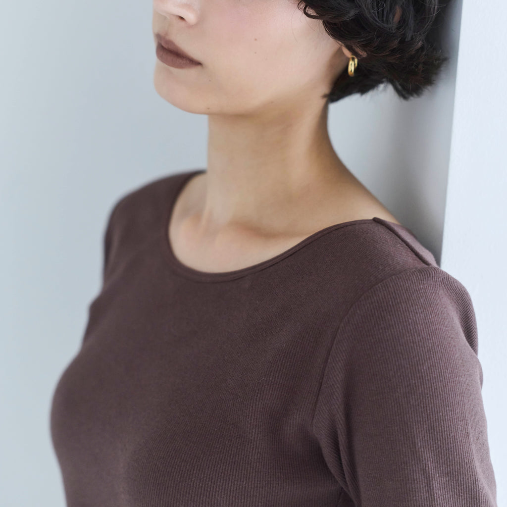 体にフィットしながらも締め付け感のない着心地で、美しいバストラインとシルエットを両立。インナーにも1枚着にも使える、頼れるベーシックアイテムです。