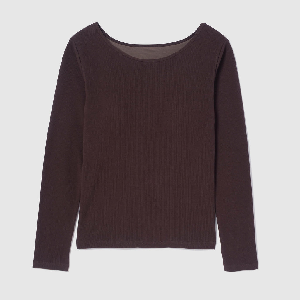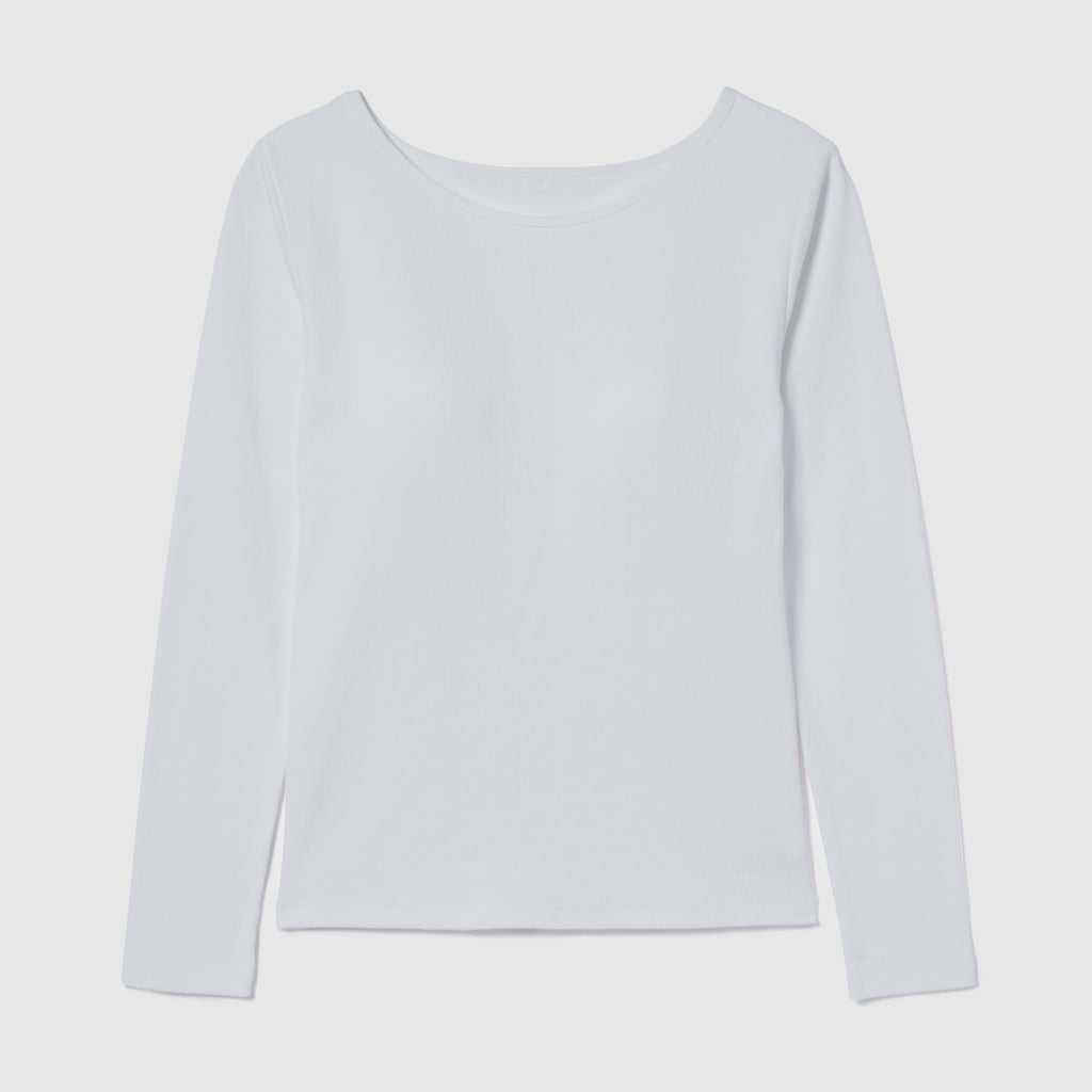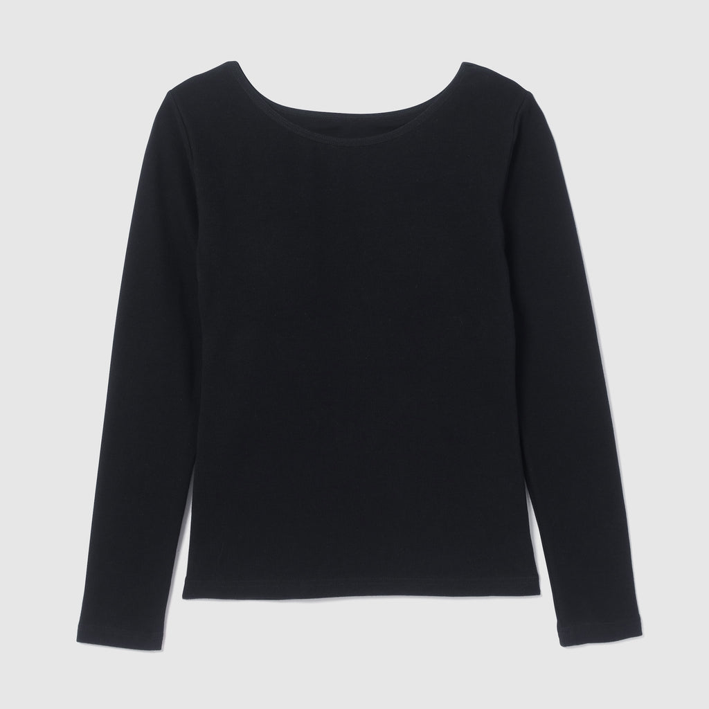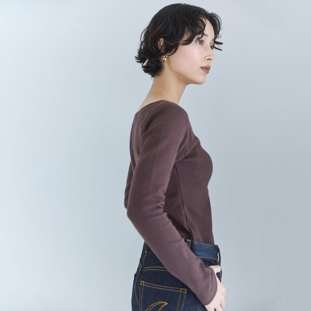 体にフィットしながらも締め付け感のない着心地で、美しいバストラインとシルエットを両立。インナーにも1枚着にも使える、頼れるベーシックアイテムです。