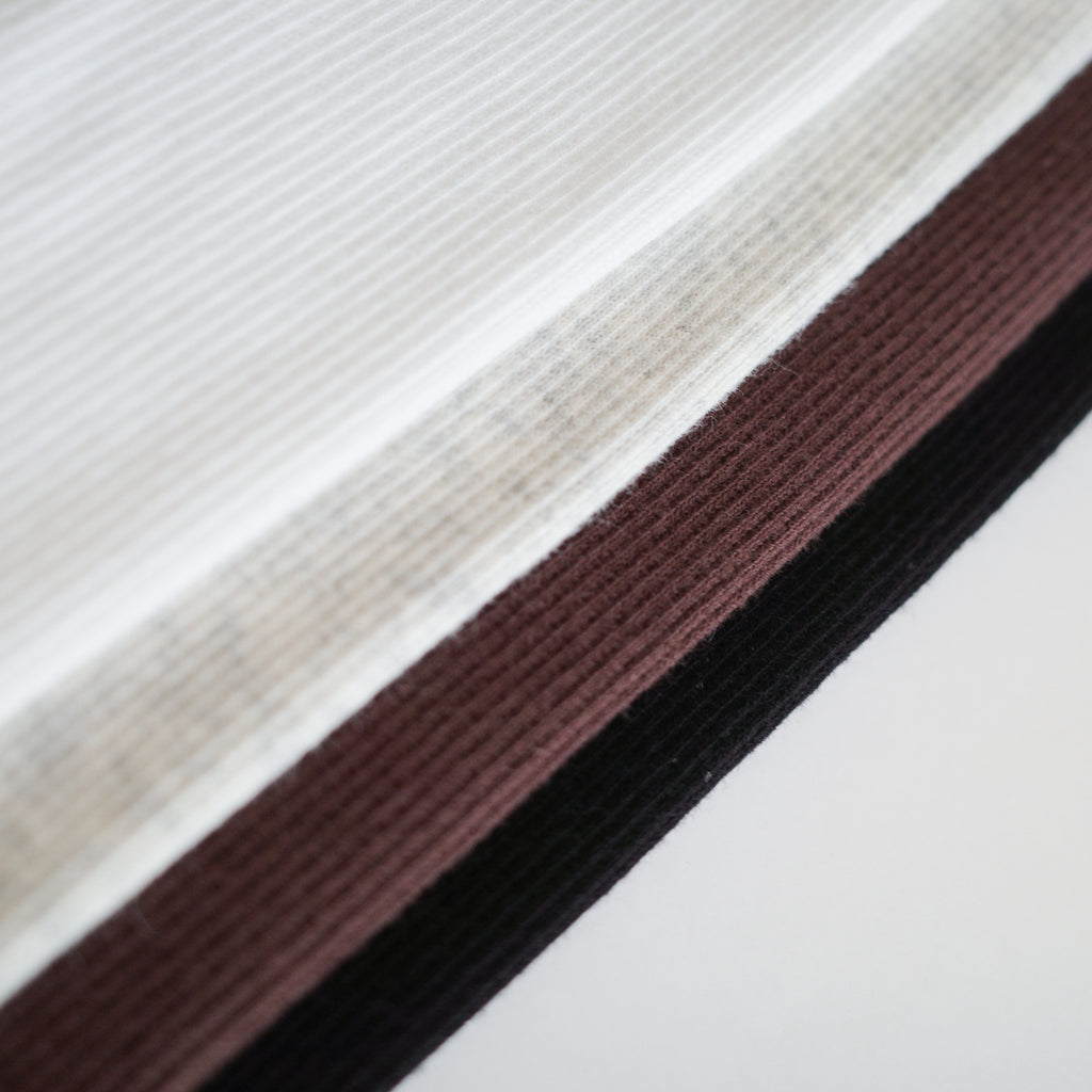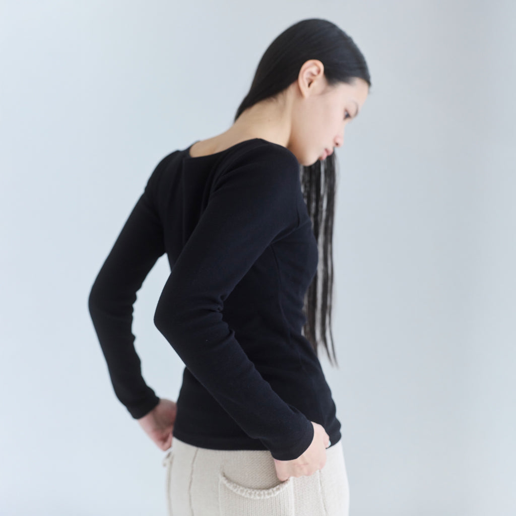 通気性・吸水性共に優れているコットン95%のリブ素材を採用。静電気が起こりにくく、乾燥する時期にもインナーとして活躍。夏には蒸れにくくサラサラとした肌触りで、通年ご着用いただける1枚です。
