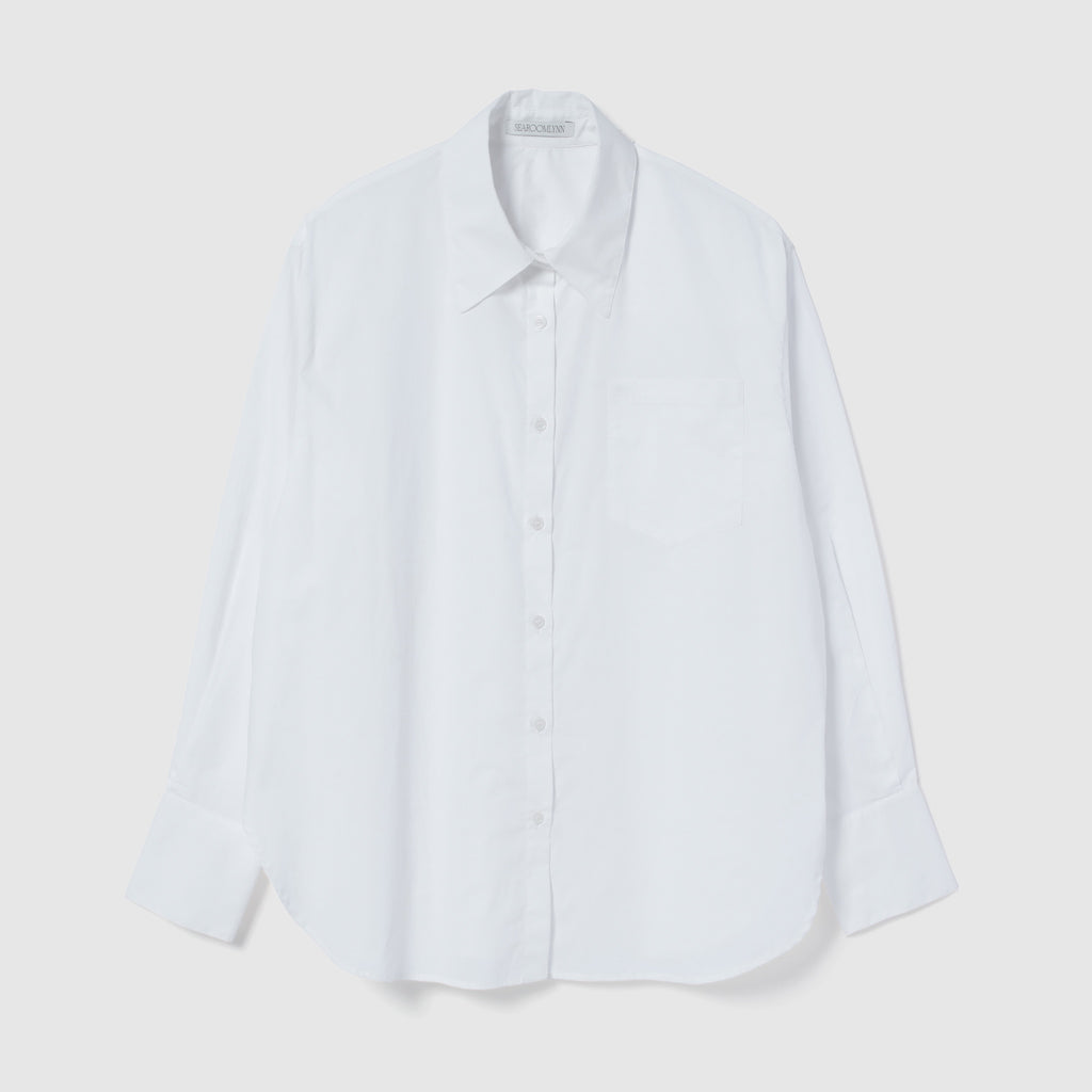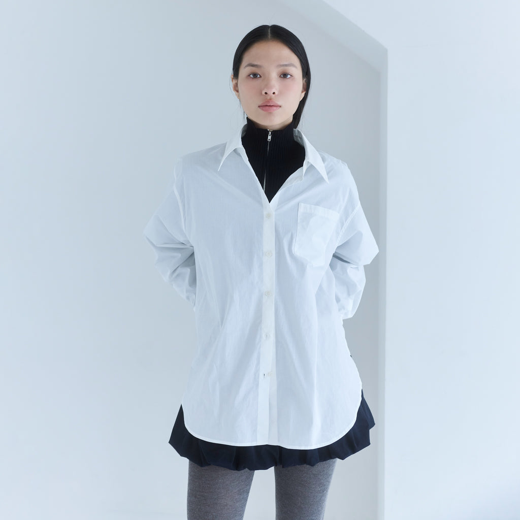 どんなスタイルにも合わせやすく、シーズンレスで着回せるベーシックデザインのシャツ。ヒップにかかるミディアム丈で、トレンドのレイヤードスタイルにも最適な1枚です。