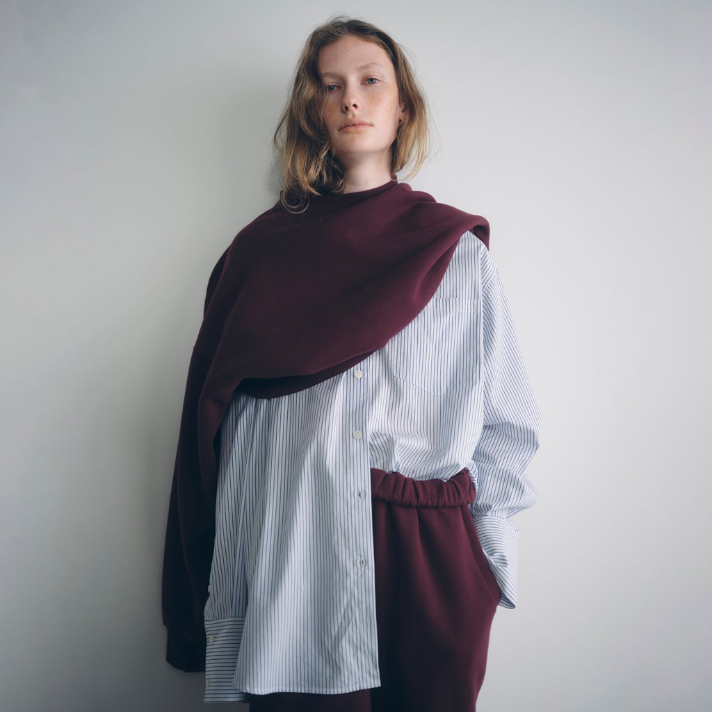さらりとした肌触りで、季節を問わず快適に着られる軽やかなコットン生地を採用。アウターを重ねてもゴワつかないよう、あえて薄手のシャツ地を選びました。