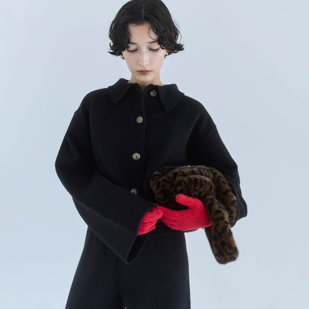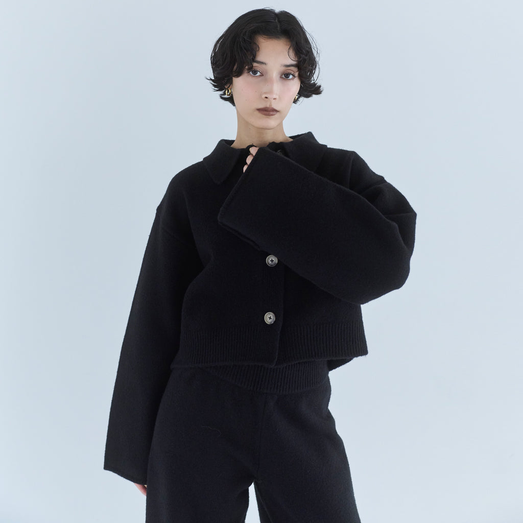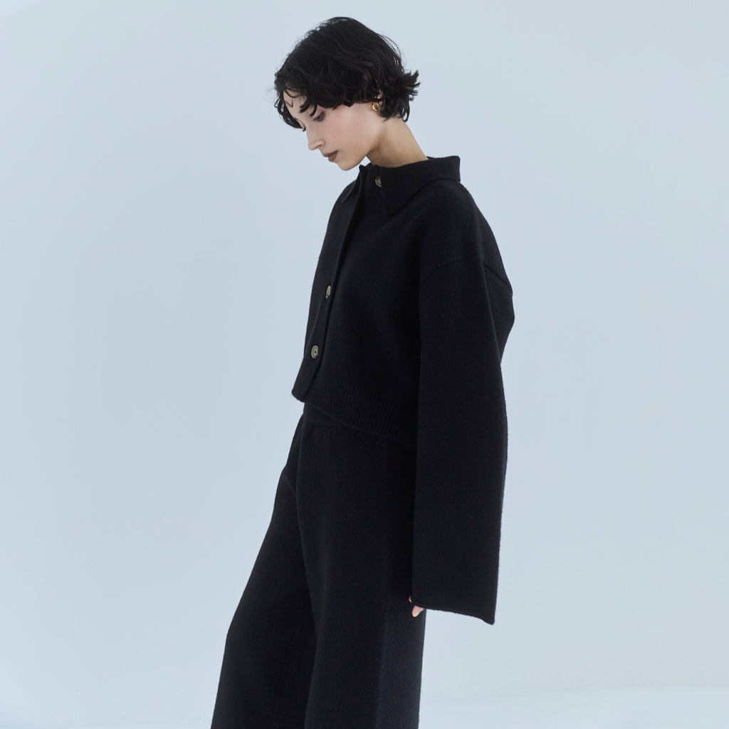 毎年大人気の暖かな〈ウールmix〉シリーズから新型が登場。コンパクトなボックスシルエットに、シャツ襟を組み合わせたデザインで、セットアップから1枚使いまで幅広くお使いいただけます。