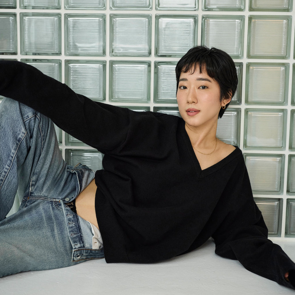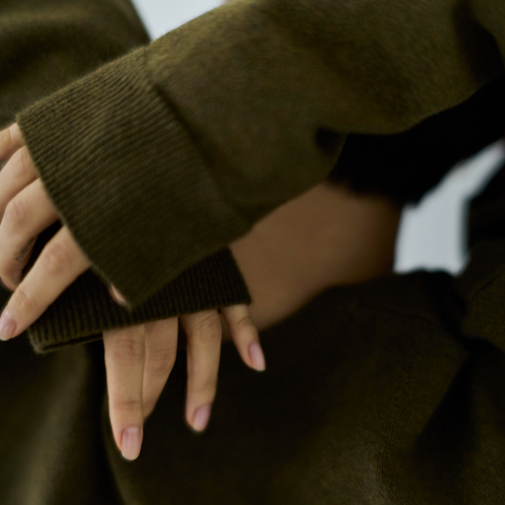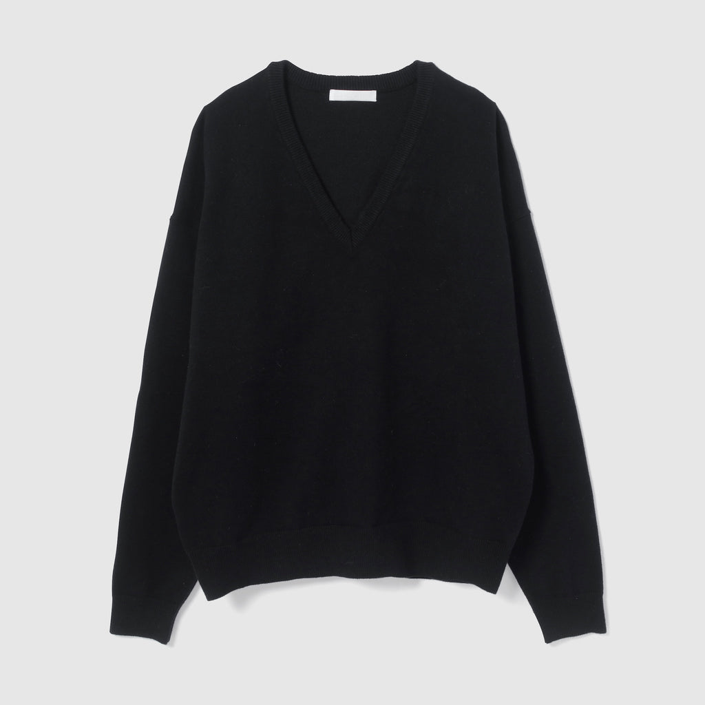 女性らしい抜け感を楽しめるVネックニット。スウェットの様なハリ感と柔らかさを両立した素材で、ラフさの中に上品さを感じる1枚です。シンプルながらも計算された深めのVラインと緩やかなシルエットが、日常のスタイルを自然にアップデートしてくれます。