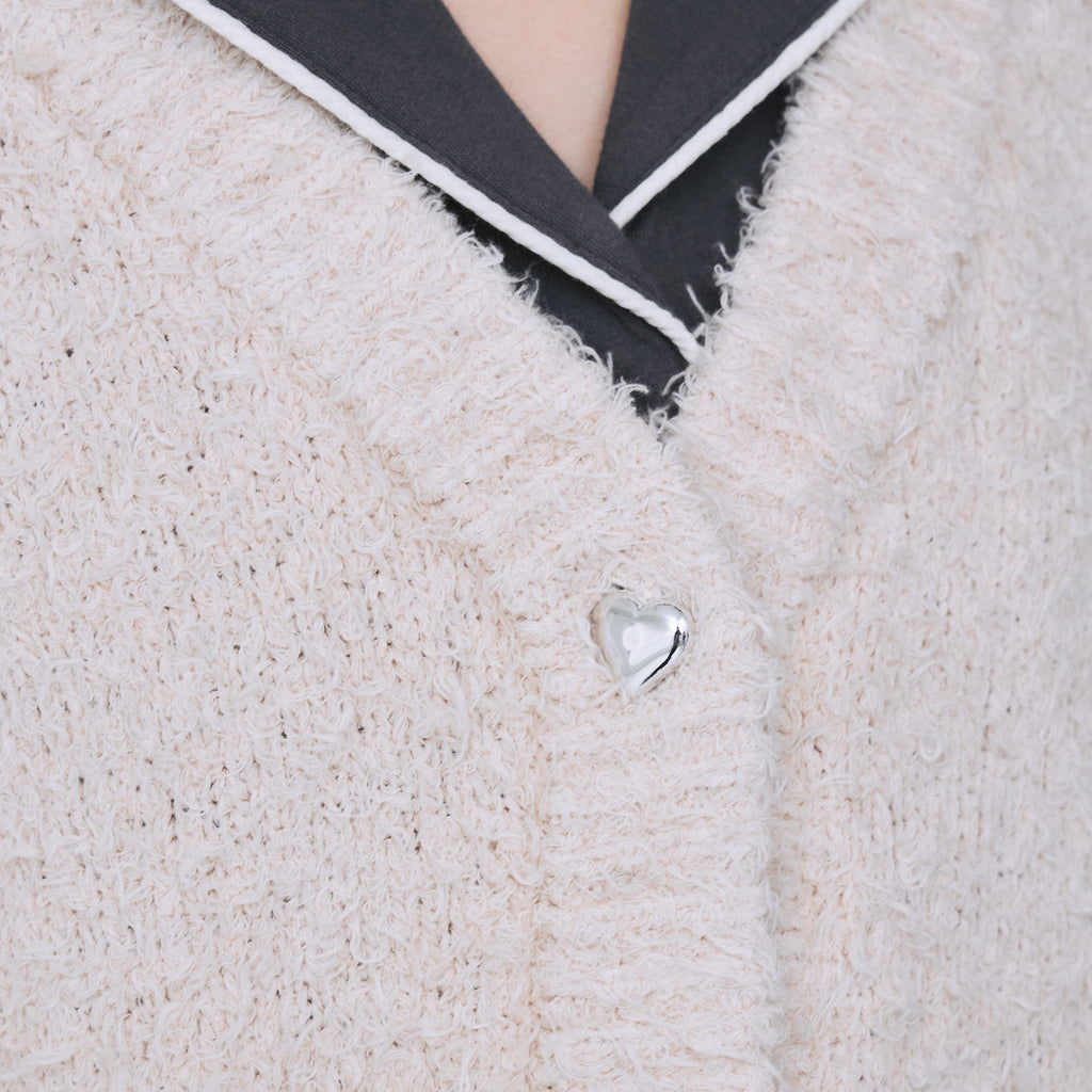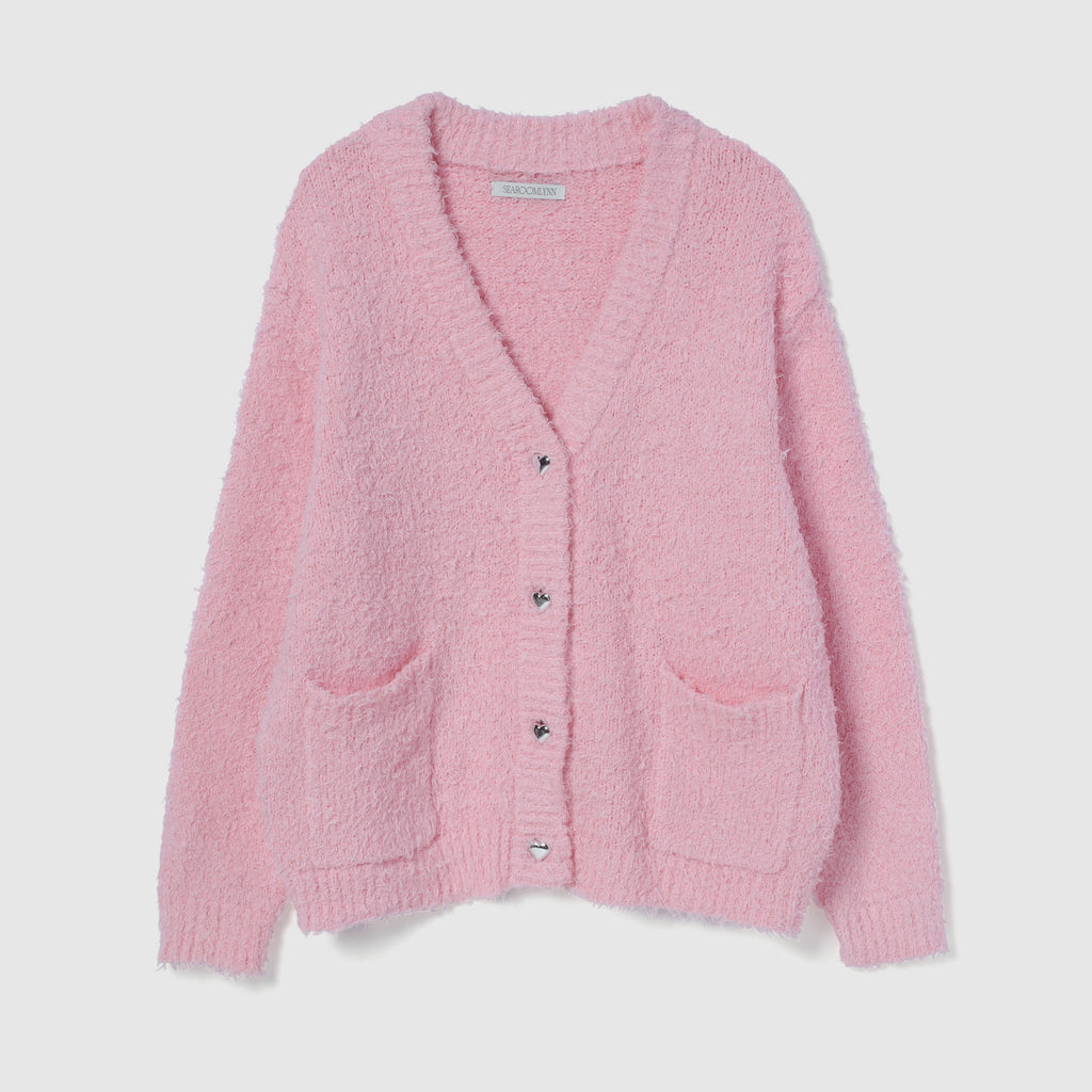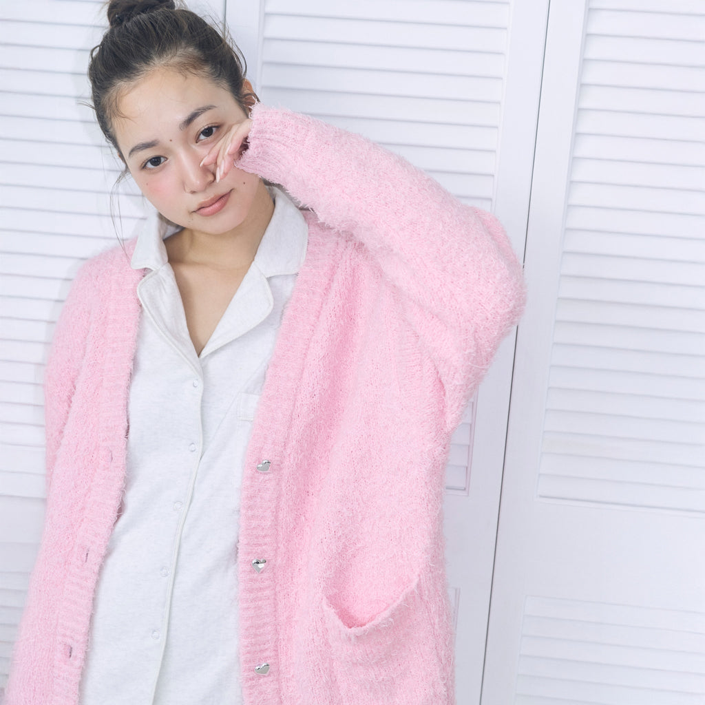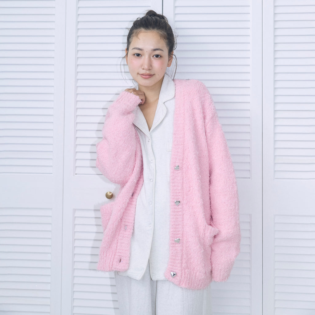 “Cozy(コージー)”という名前のとおり、体を包み込むリラックス感が魅力のニットカーディガン。ところどころに毛足の表情を持たせた優しい風合いが魅力で、軽さと温かさを両立。リラックスシルエットと深すぎないVネック、シルバーのハートボタンがチャームポイントに。