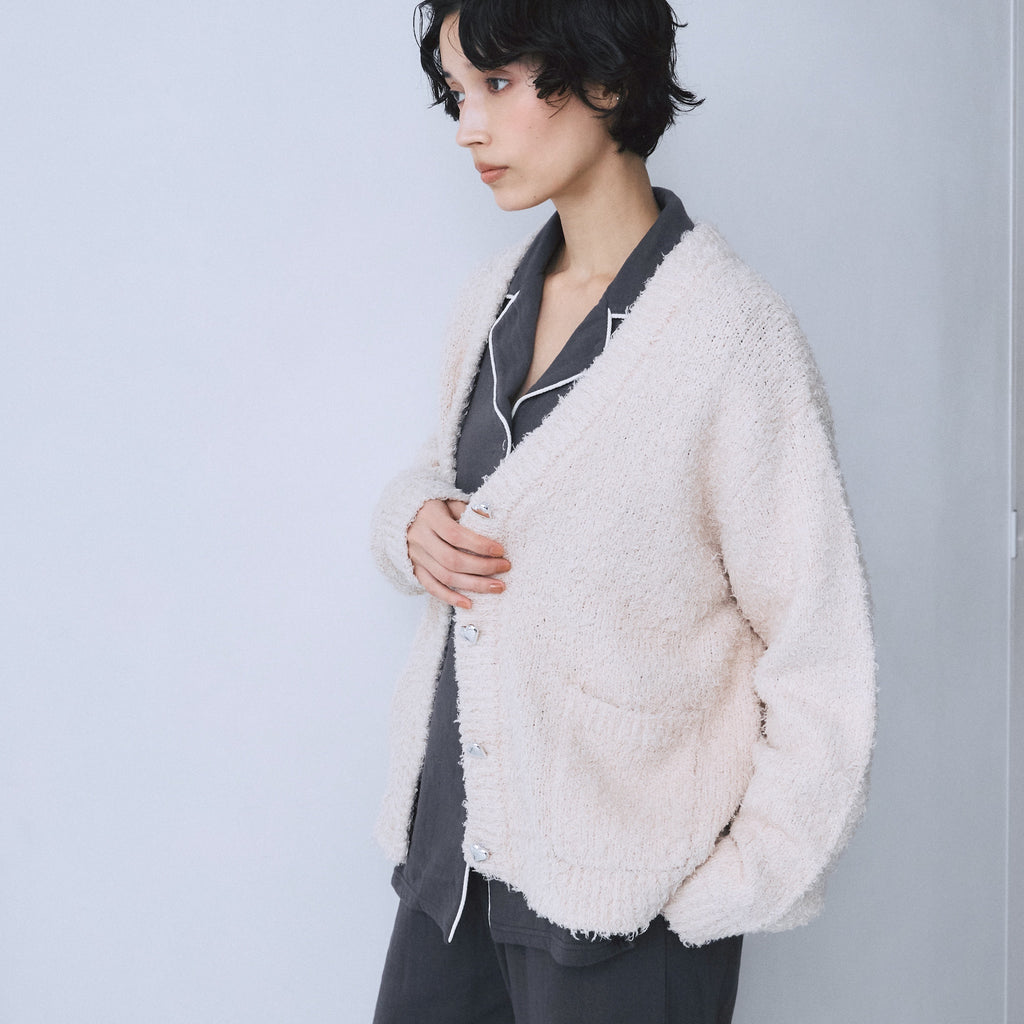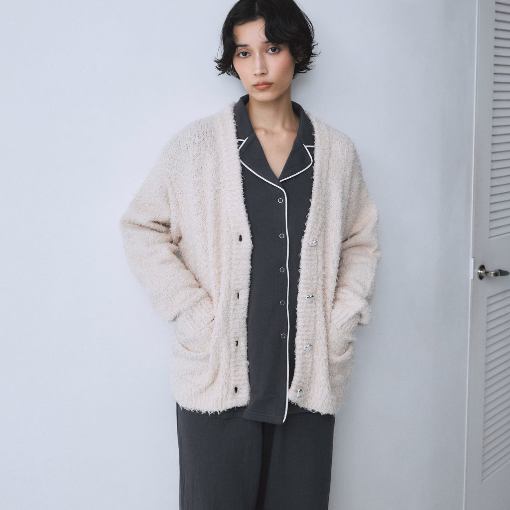 どんなアイテムにもさらりと合わせるだけで温かみのあるコーデが完成。おうち時間では同時発売の〈C/2F HOME ロングスリーブ&パンツセット〉の上に羽織ってもOKです。
