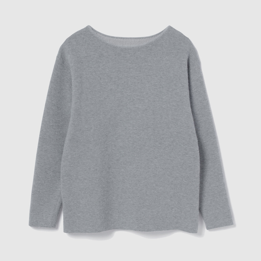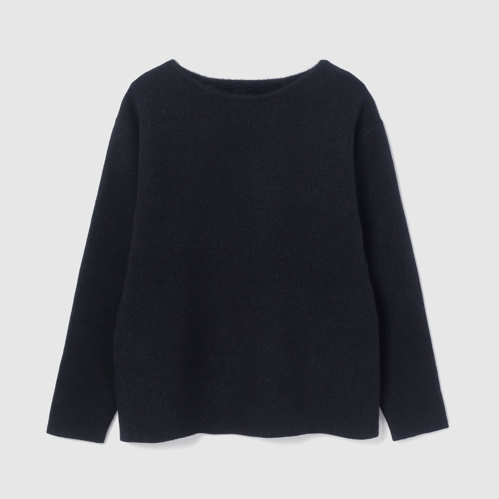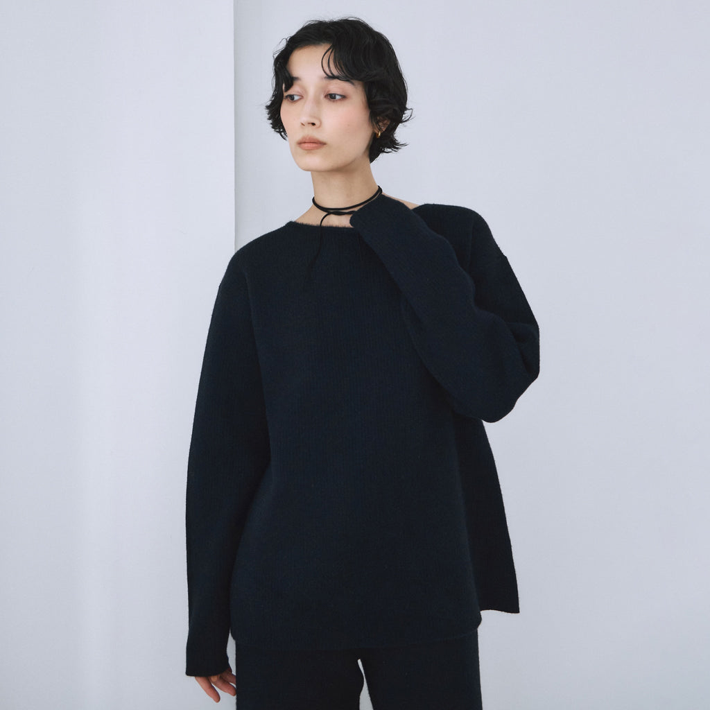 無駄を削ぎ落としたミニマルなリバーシブルデザイン。両面どちらでも着られる仕立てで、その日の気分やスタイルに合わせてそれぞれ違った印象を楽しめる2wayニットです。首元はボートネックのようなラインにすることで、大人の抜けをプラスしました。