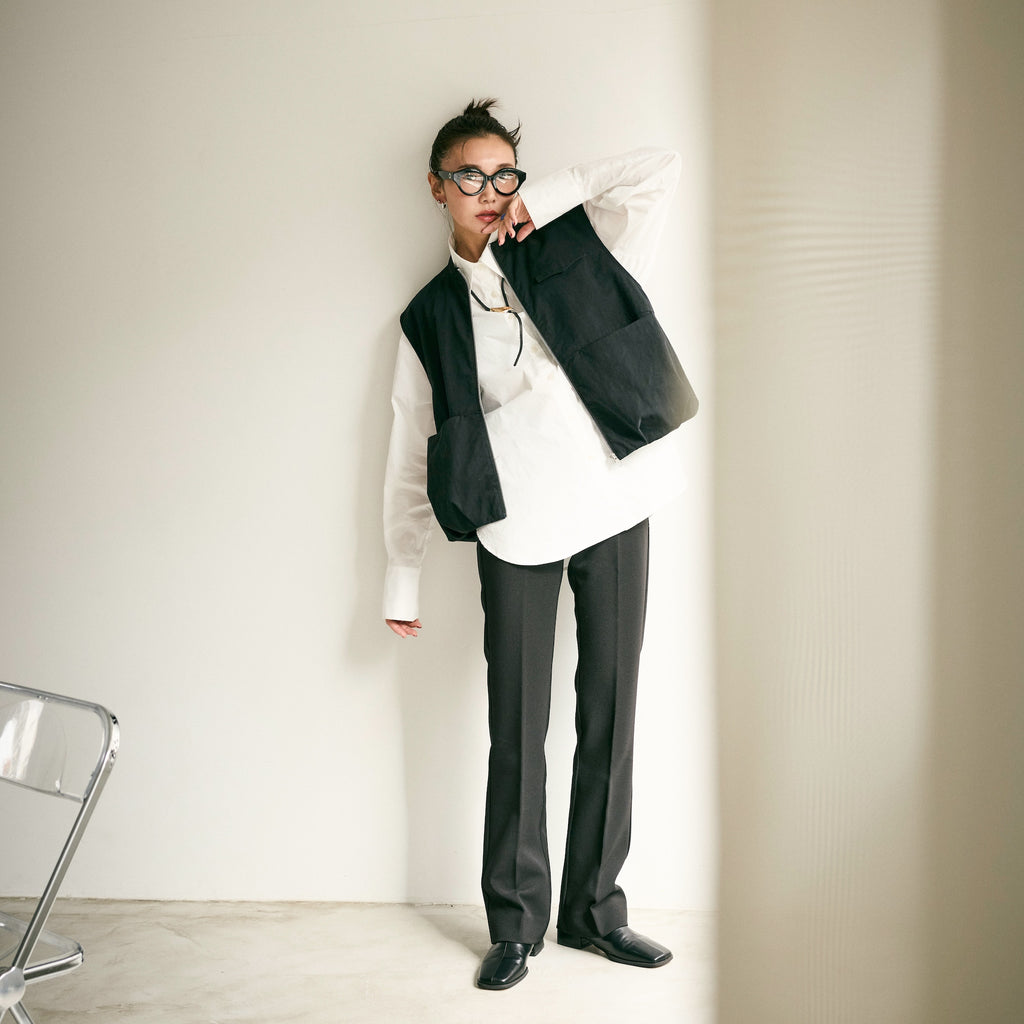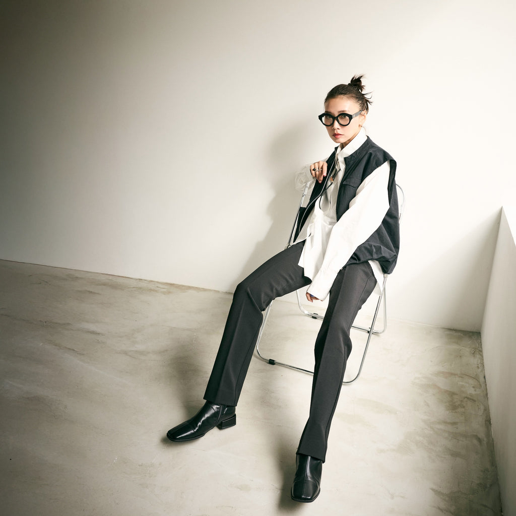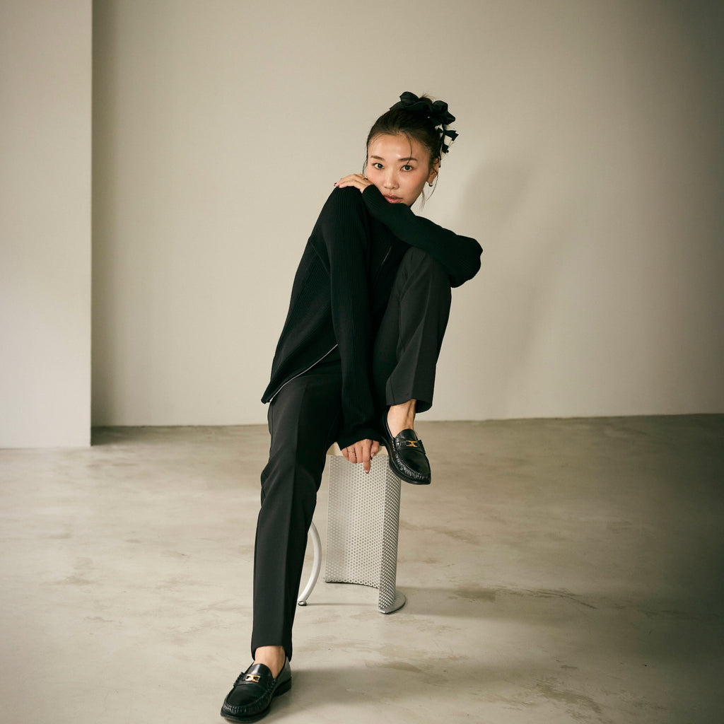 ゆったりとしたスウェットやニットと合わせてカジュアルに、シャツやテーラードジャケットを合わせればオケージョンにも活躍 。股下丈はやや長めに設定しているので、ヒールを合わせるとより脚長効果が際立ちます。