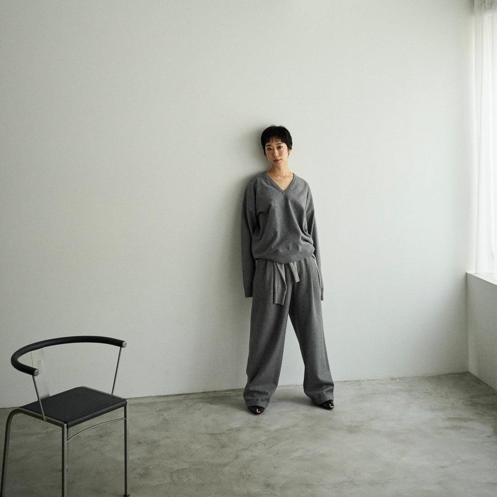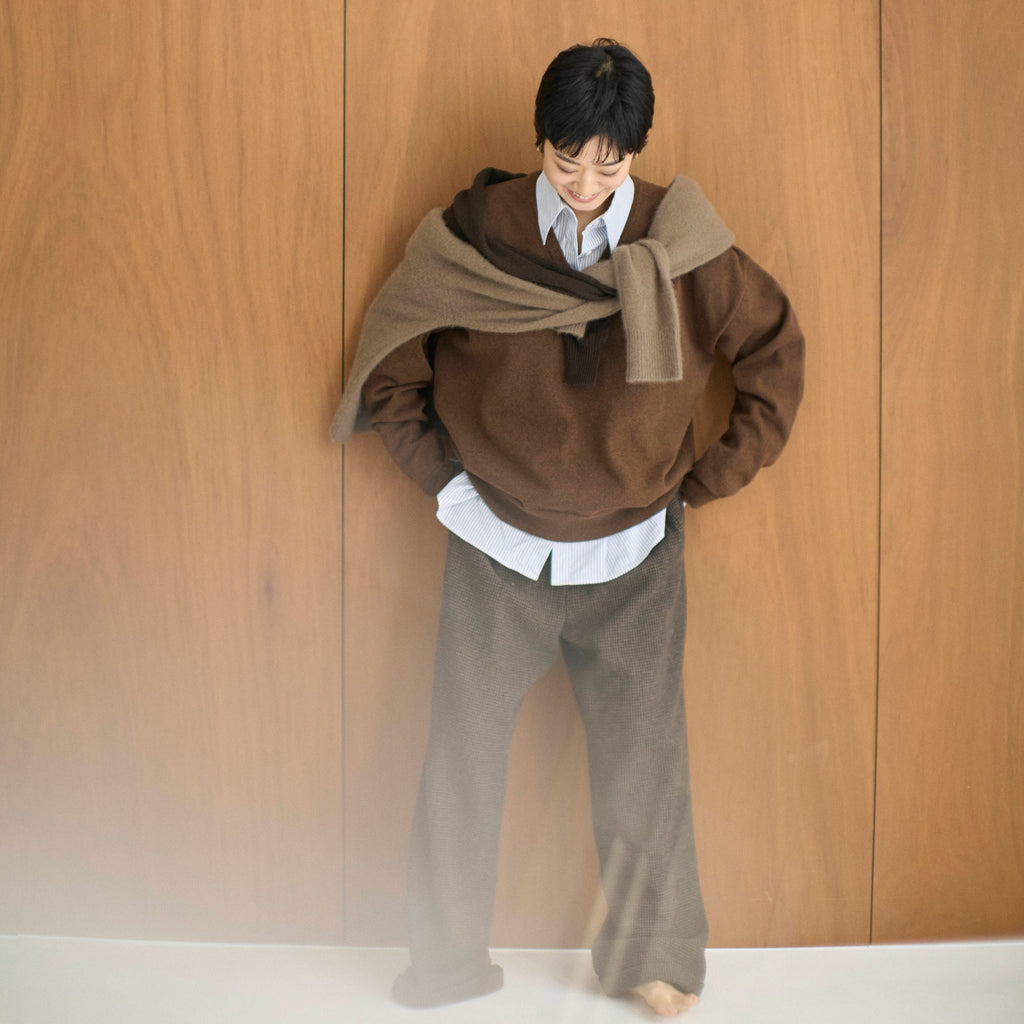 同時発売のPRコラボシリーズ、〈collab Light Sweatlike V-neck Knit〉との合わせもお楽しみいただけます。シャツ、ニット、ロンTまで様々なトップスと相性良好。