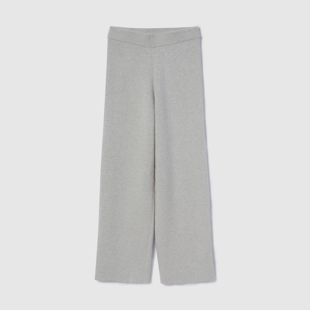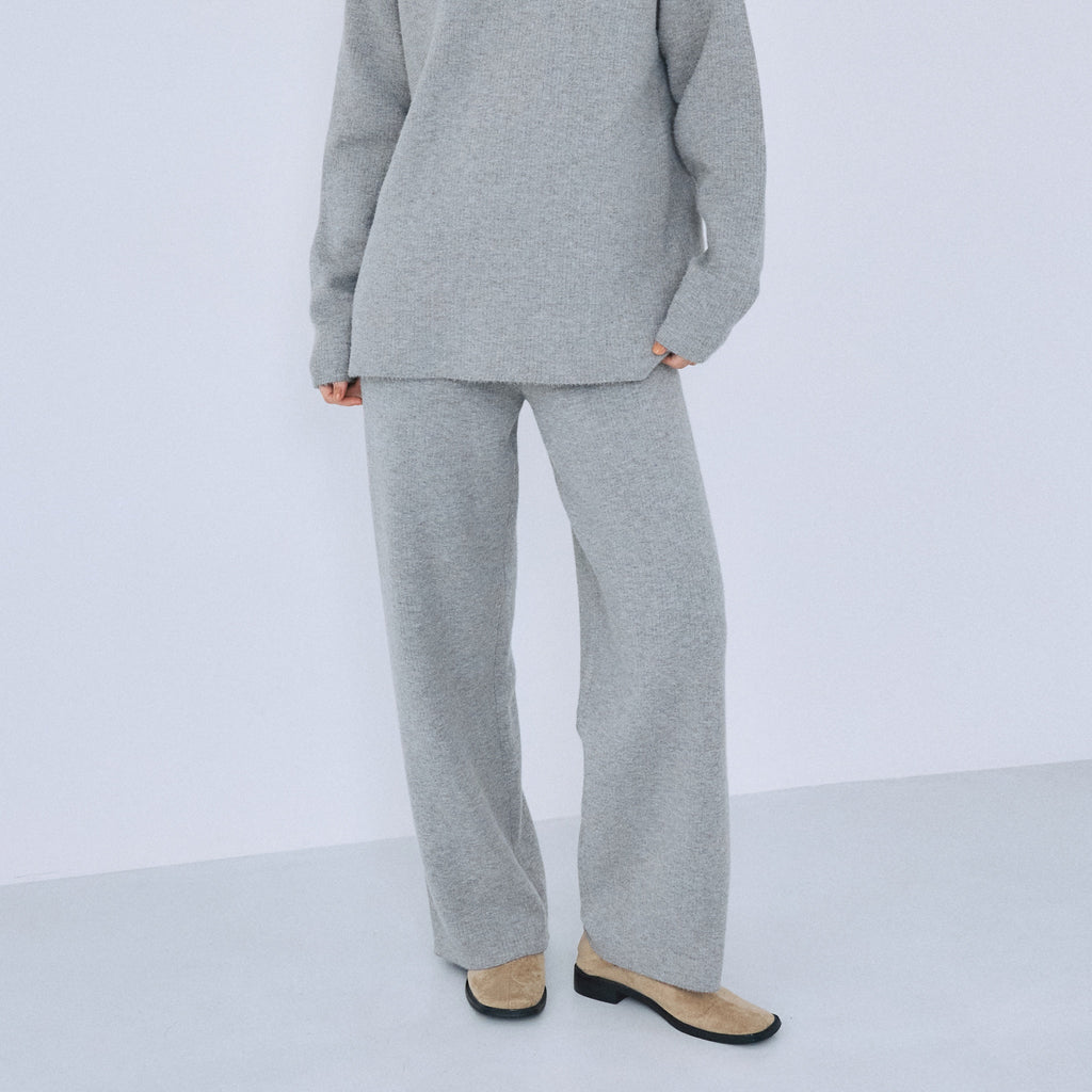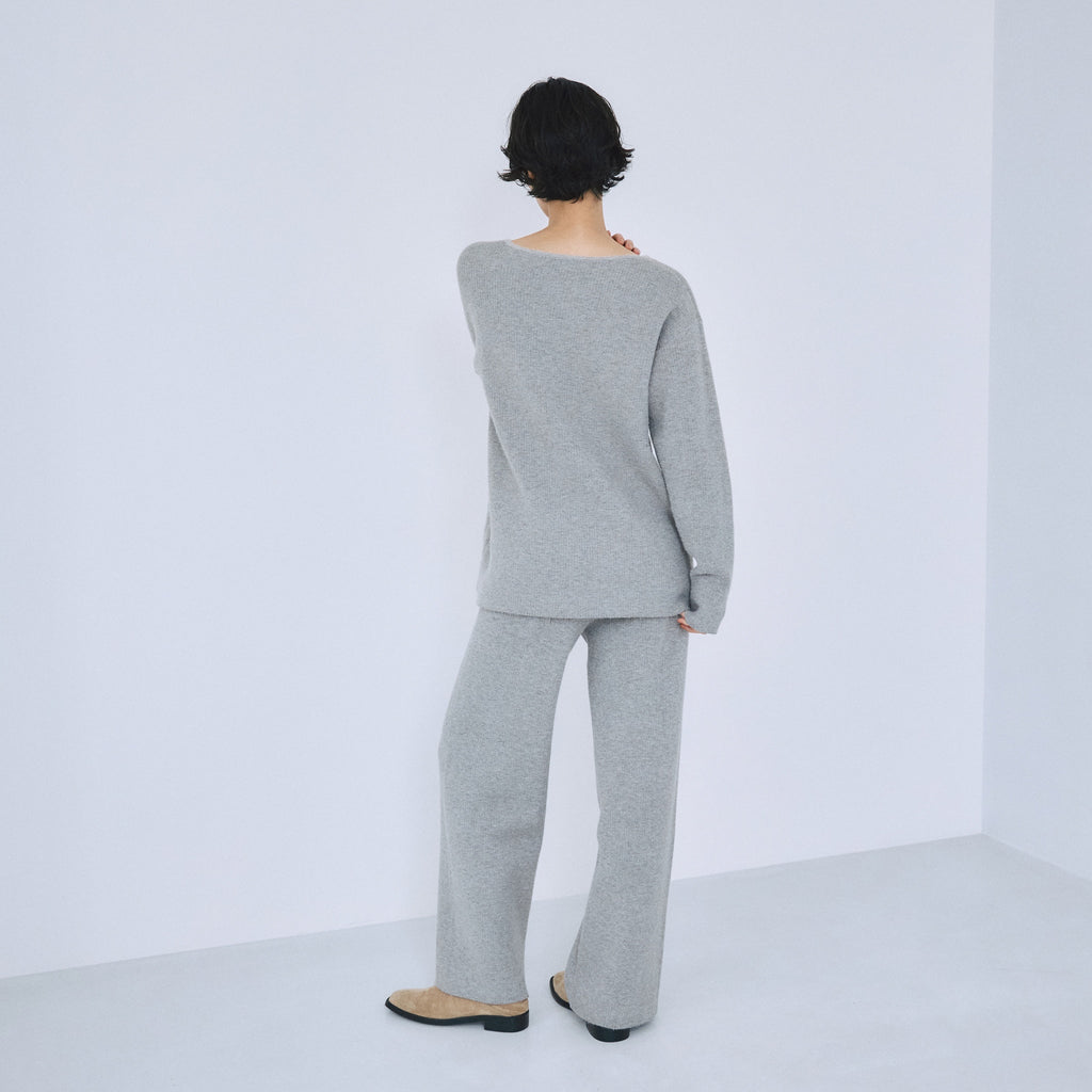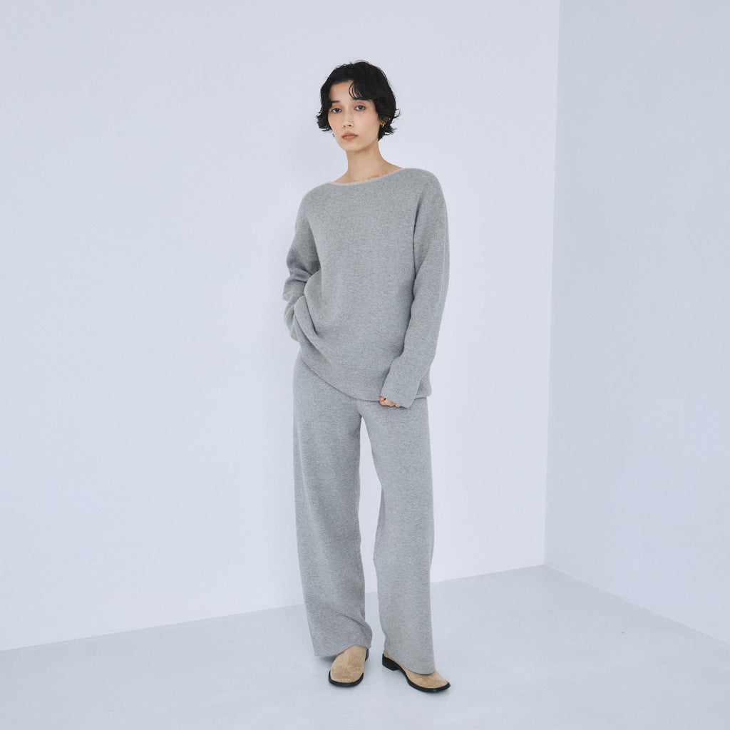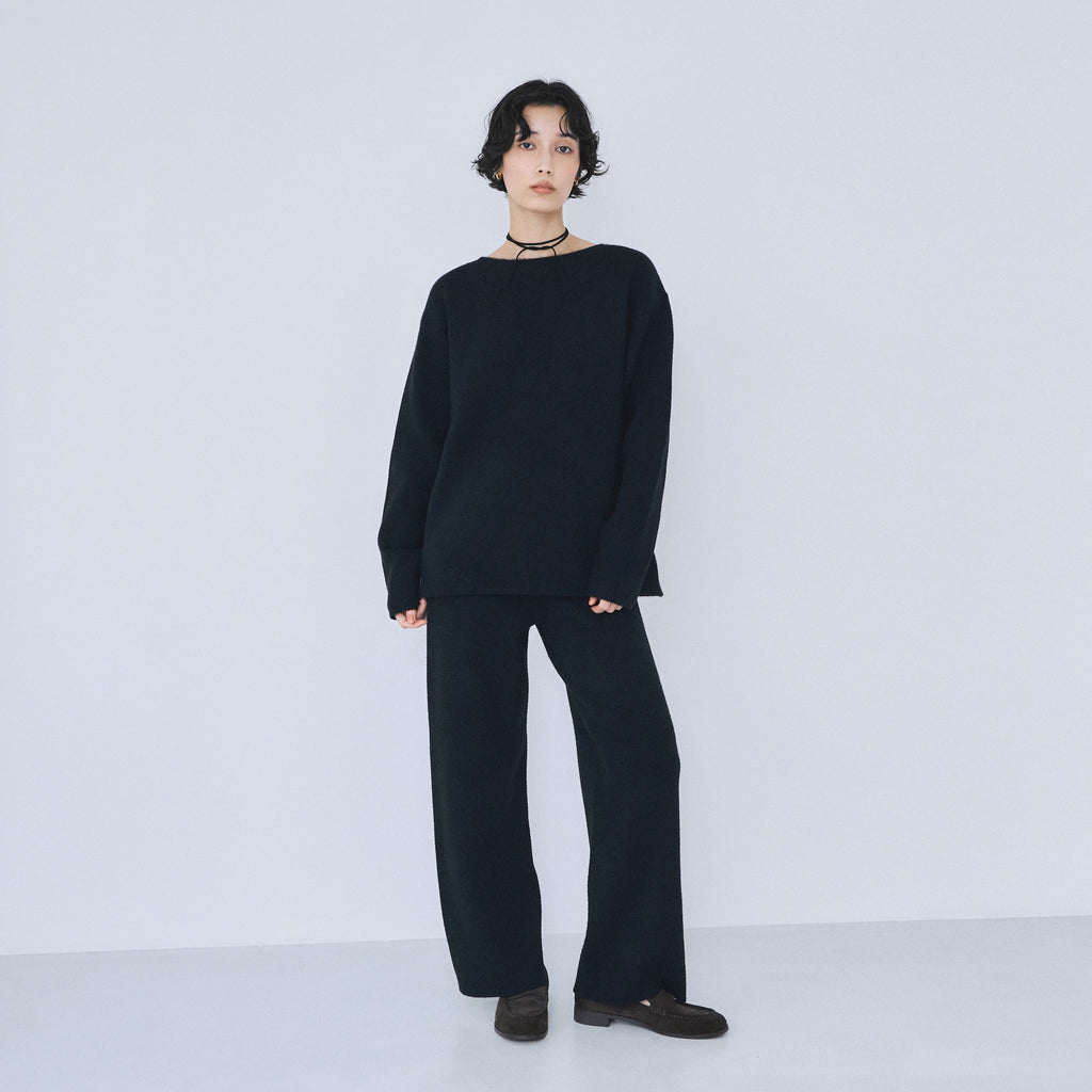 ヒップから裾までなだらかに落ちるストレートシルエット。股下をやや短めに設計することで、ニットの重さが目立たず軽やかに見えるバランスを実現しています。ストンと落ちるラインが脚を綺麗に見せ、リラックス感と洗練感を両立します。