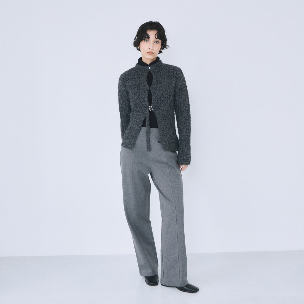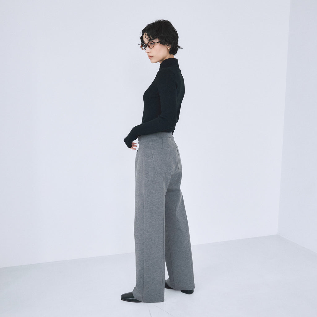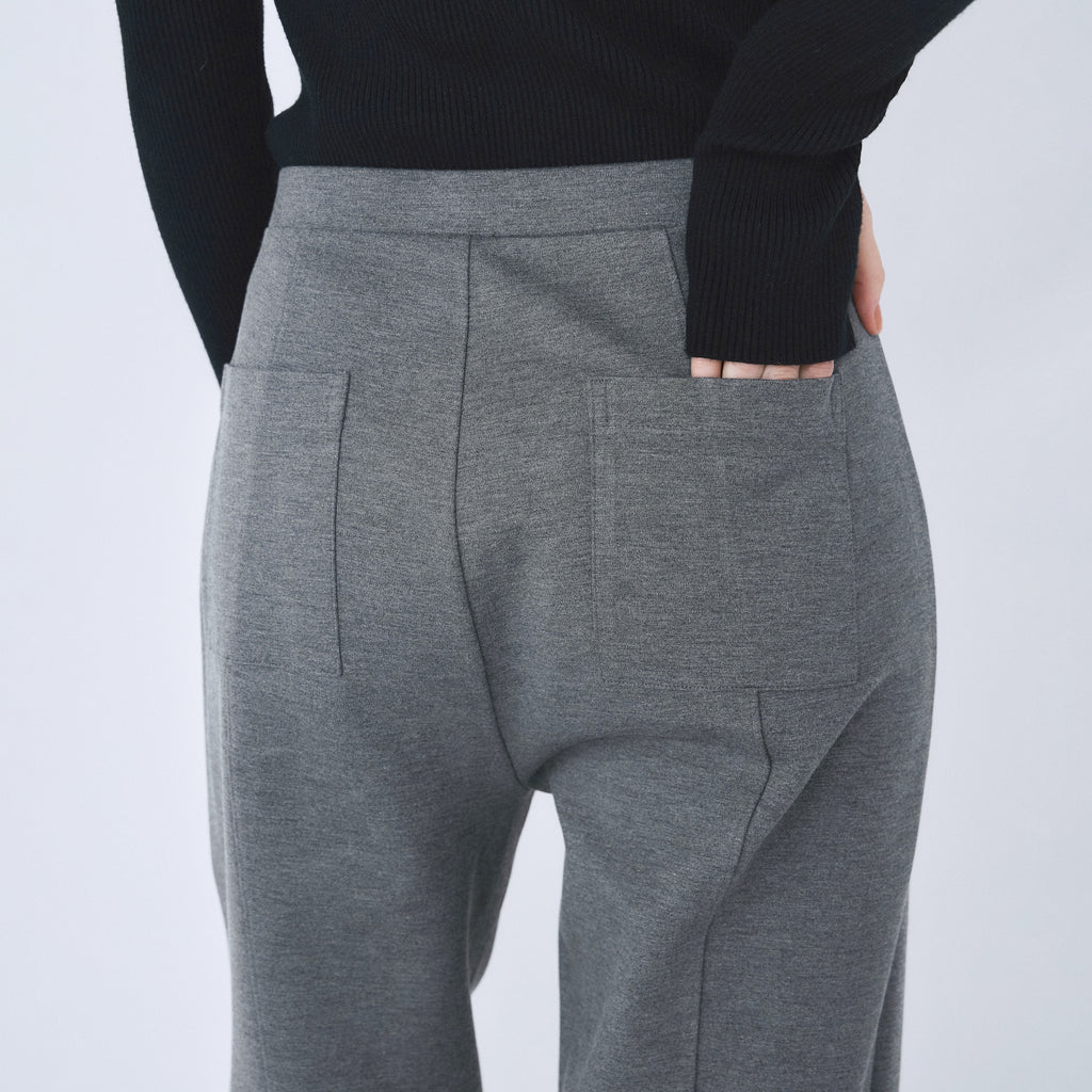上品な印象を与える、落ち感のあるストレッチ素材を使用。しっかりとしたキックバックでシルエット補正効果も。肌に触れる内側は裏起毛になっており、真冬でも暖かくご着用いただけます。