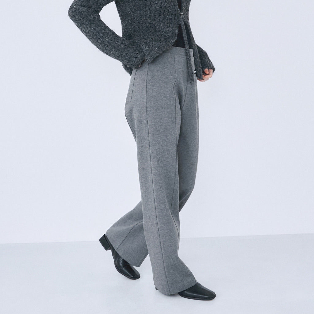美しいラインをキープするストレッチ×裏起毛で暖かい、優秀ストレートパンツ。ウエストゴムでストレスフリーながらもフロントの切り替えで脚長見えし、デイリーからキレイめまで着回し力抜群の1枚です。