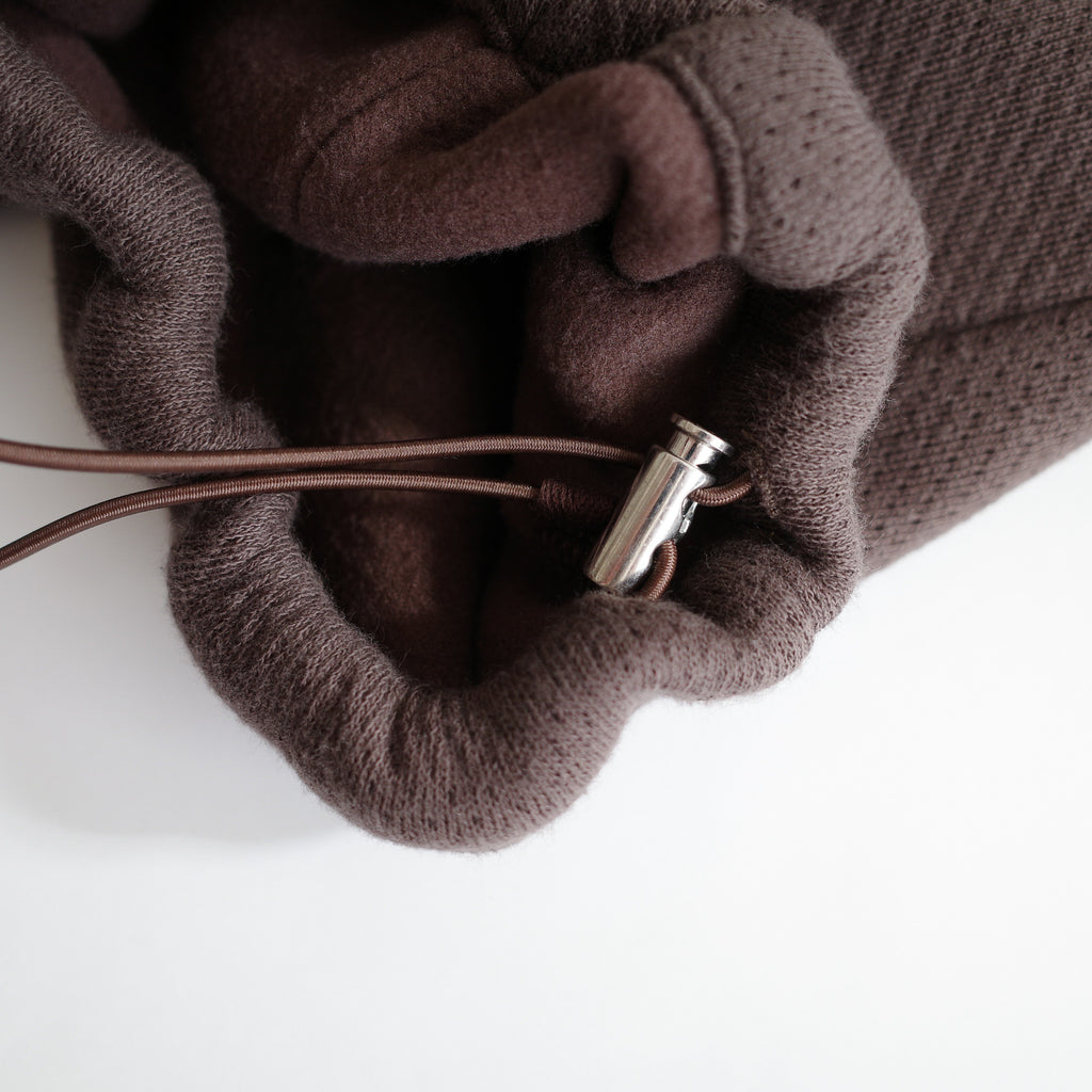 表裏で編み方の異なる“サカリバ素材”を使用し、表面はメッシュ調、内側は起毛仕立てに。スポーティな表情と、見た目以上の暖かさを兼ね備えています。