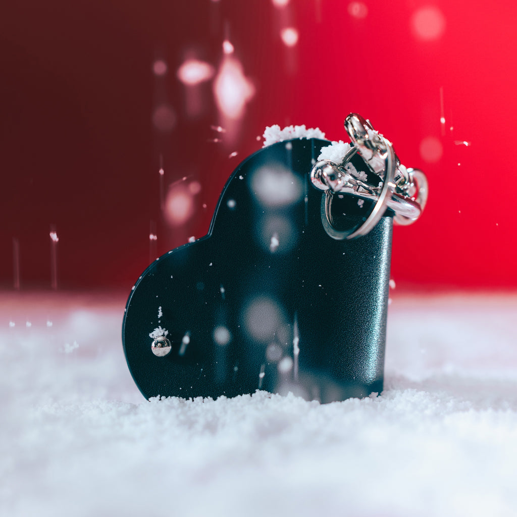 存在感のある大きめのハートフォルムがアイキャッチー。立体的でふっくらとした形が特徴で、キーリングとしてはもちろん、バッグチャームとしてもスタイリングを華やかに見せてくれます。